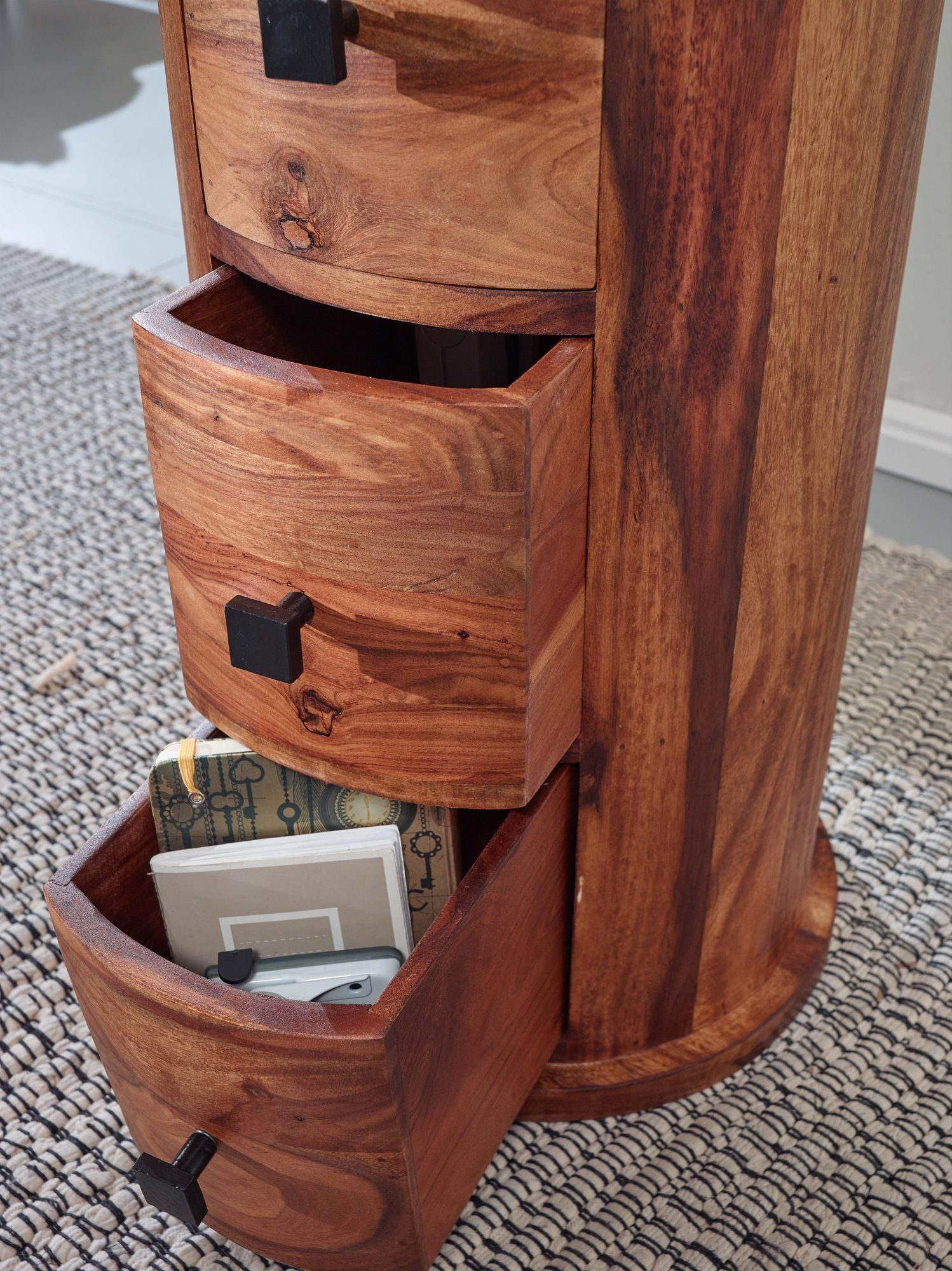 Aparador de Design Madeira Maciça Sheesham Marrom | 35x85x35 cm | 4 Gavetas