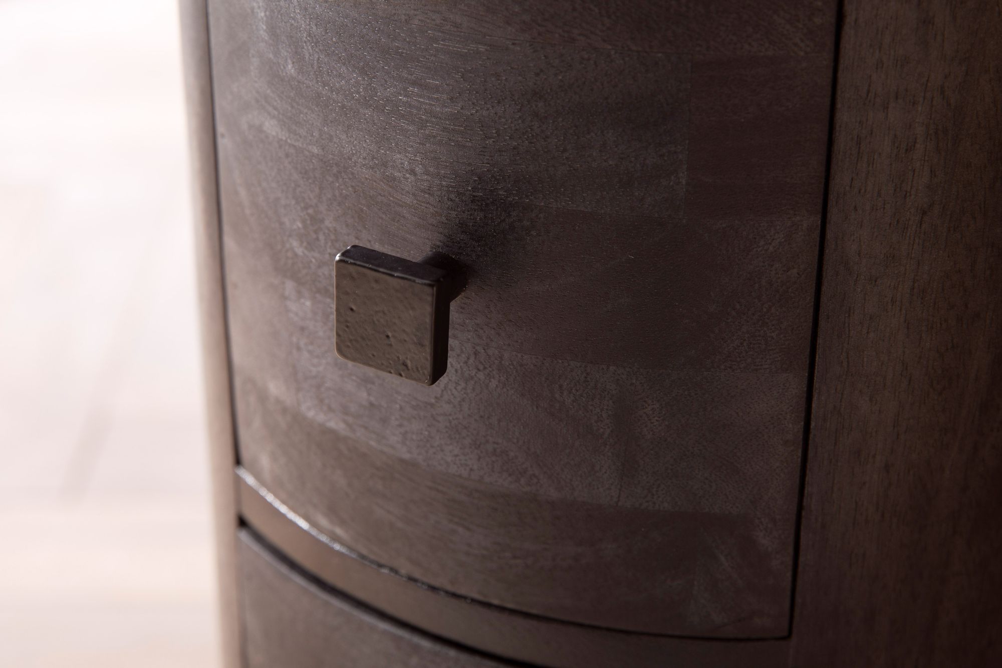 Combine elegância e durabilidade com este aparador de design em madeira maciça de manga preta. Compacto e funcional, possui quatro gavetas para organizar pequenos objetos e uma superfície perfeita para decorar.
