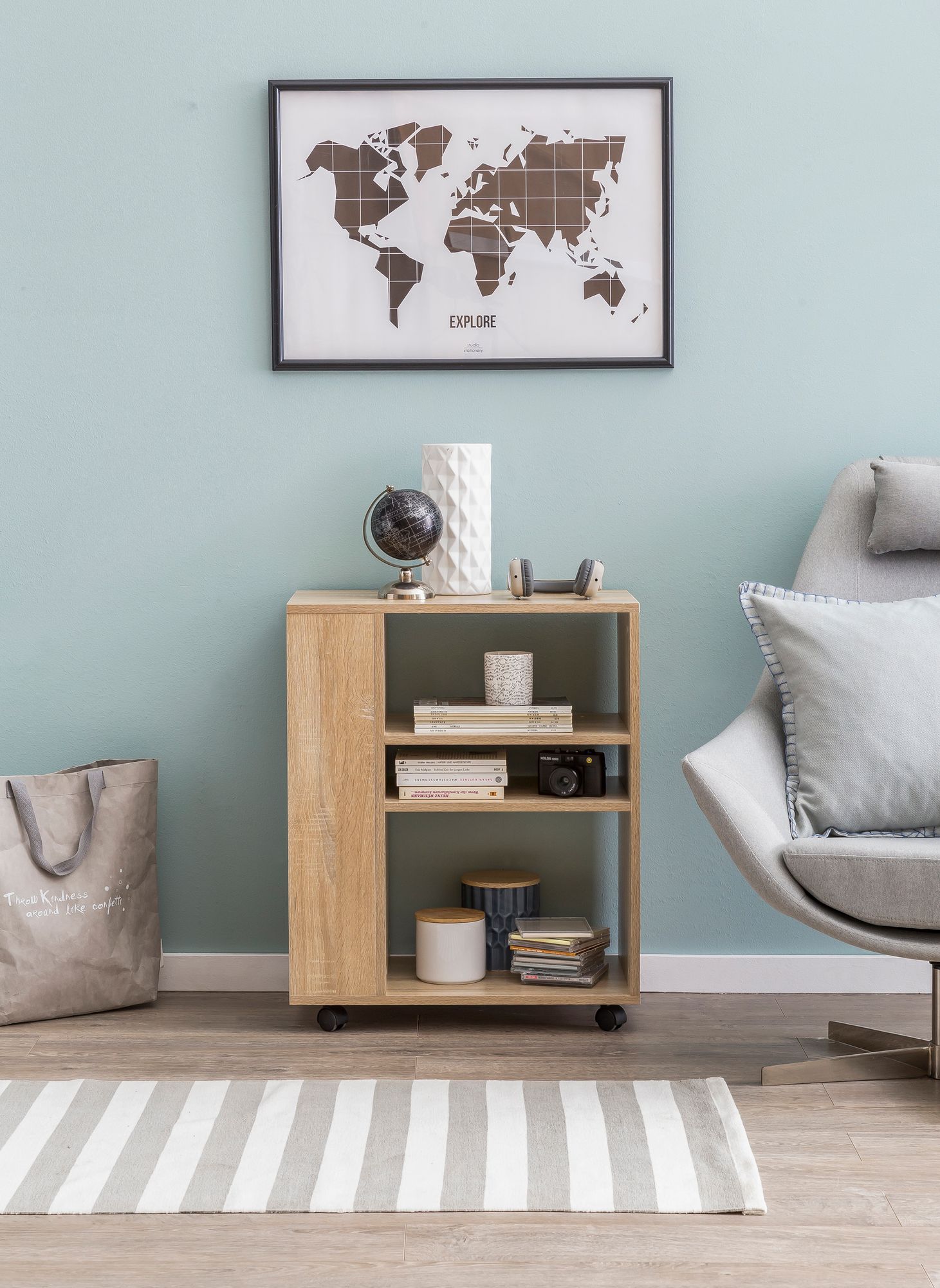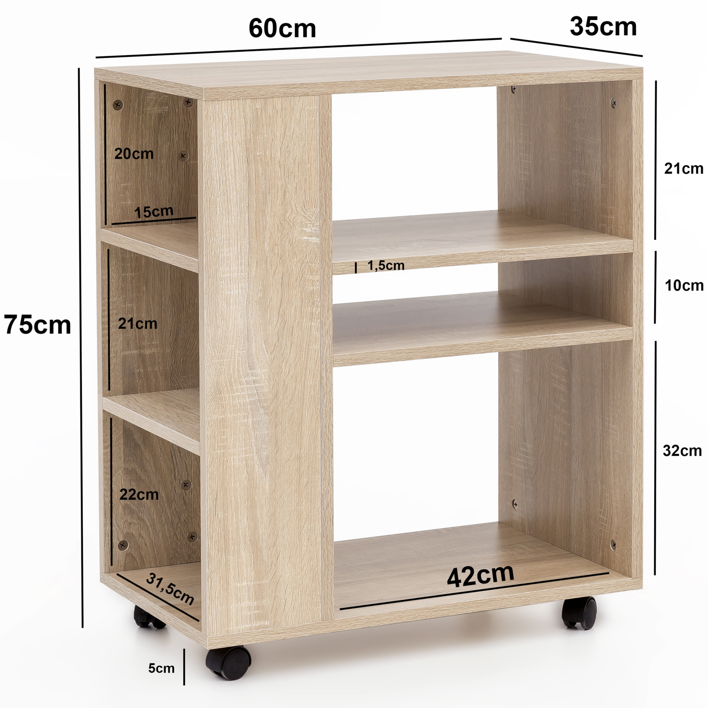 Informações de produto "Estante Sonoma 60x35x75 cm | Madeira melamínica Sonoma | Rodízios pretos"
