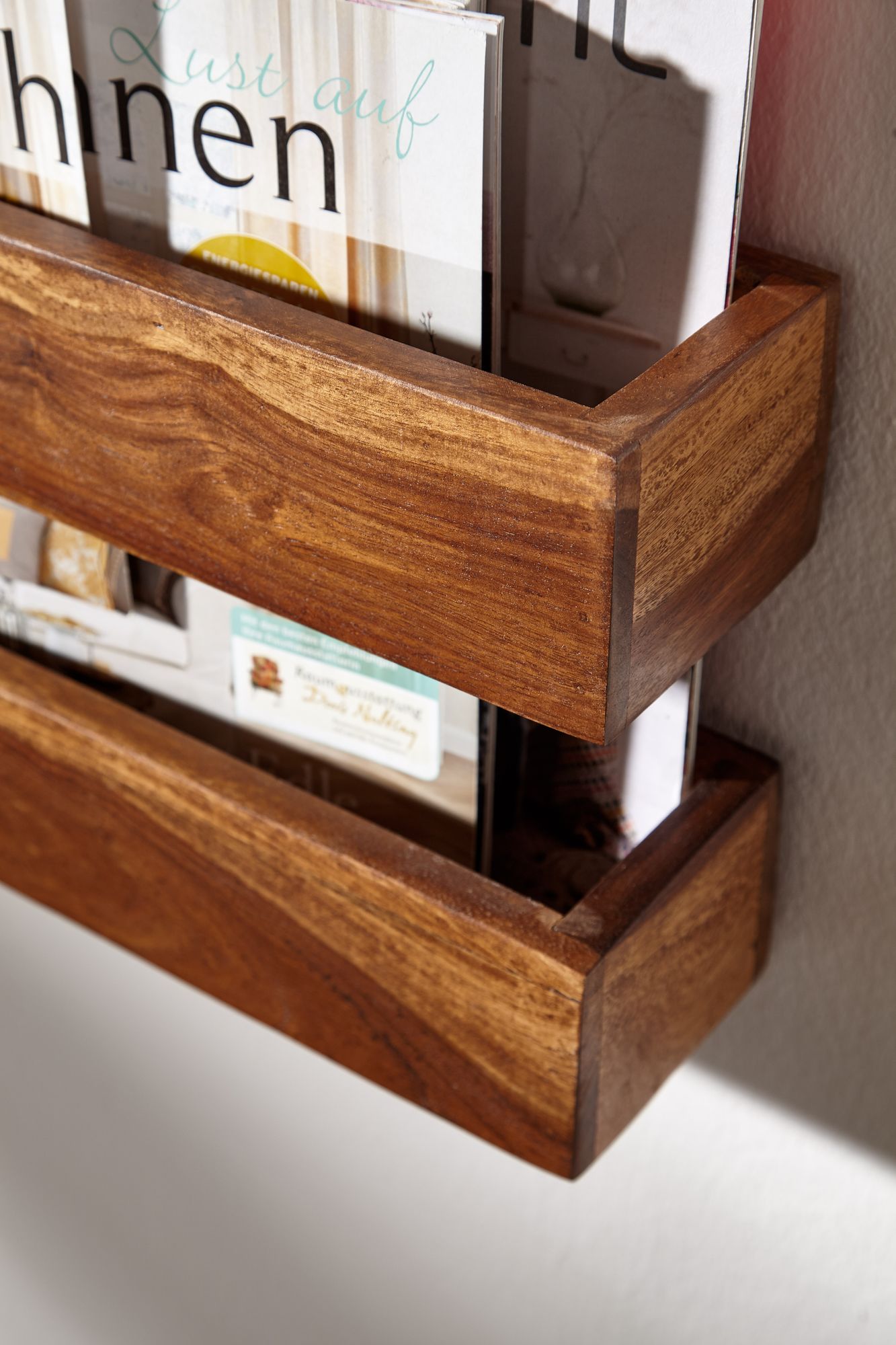 Informações de produto "Suporte para jornais MUMBAI | Madeira maciça Sheesham natural | 30x72x10 cm | 2 compartimentos"