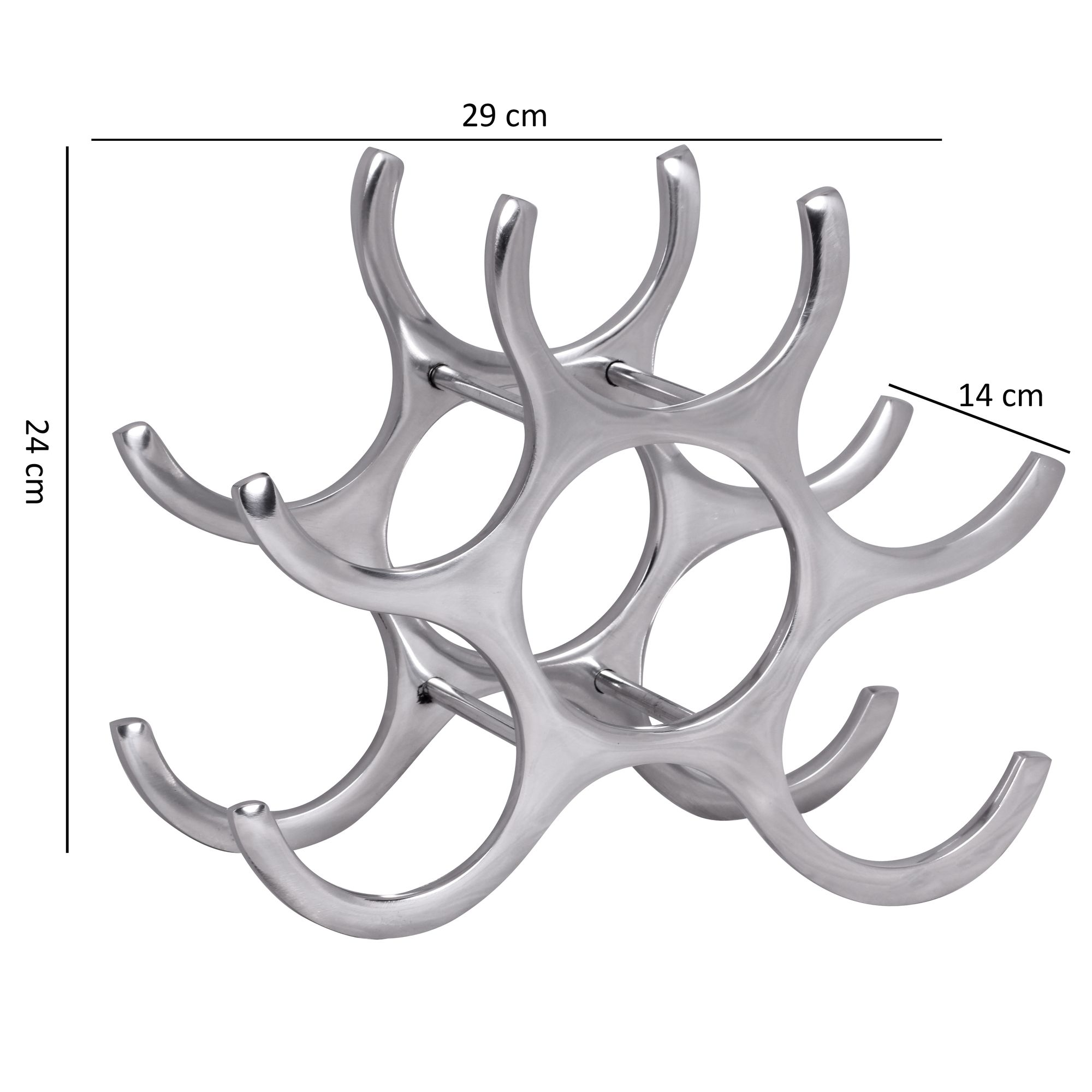 Suporte de vinho design em alumínio prateado para 6 garrafas | Alumínio | 29 x 24 x 14 cm