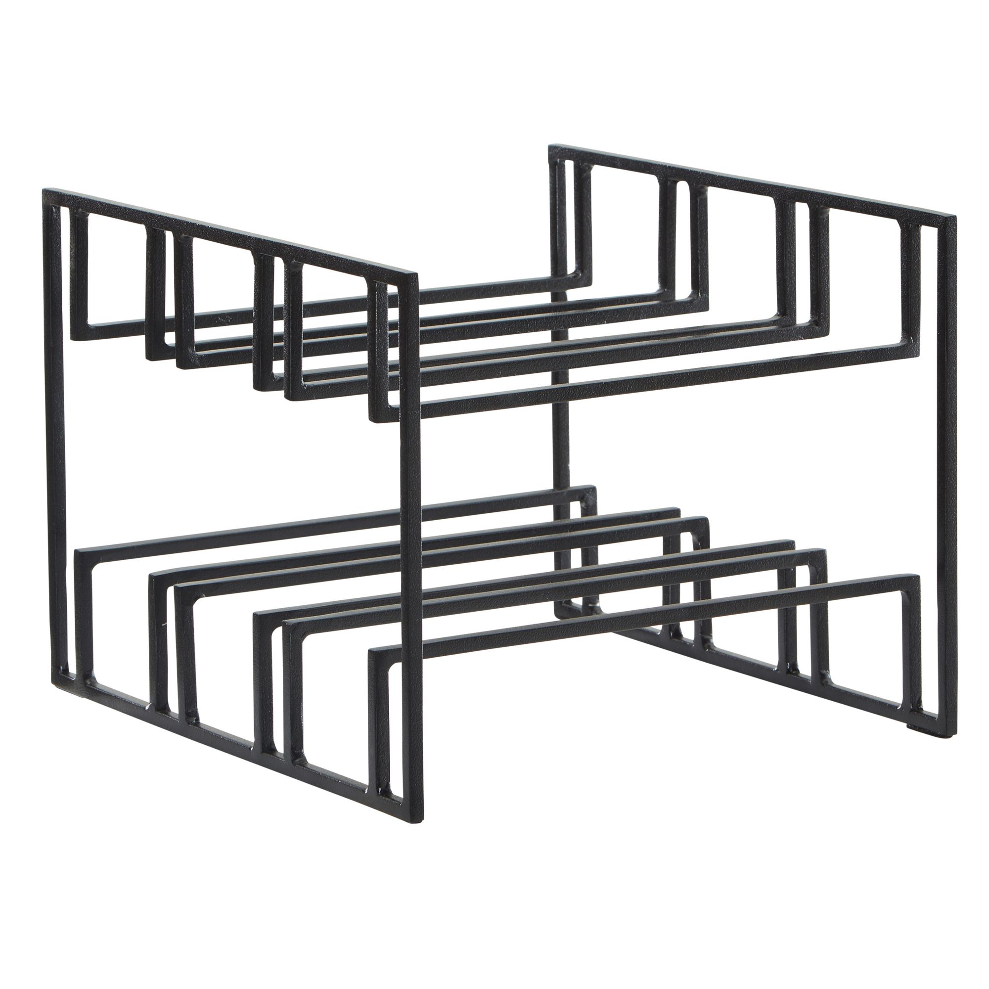 Este suporte para garrafas de vinho em metal preto combina design moderno e funcionalidade. Armazena até 6 garrafas horizontalmente, mantendo as rolhas húmidas para a melhor conservação.