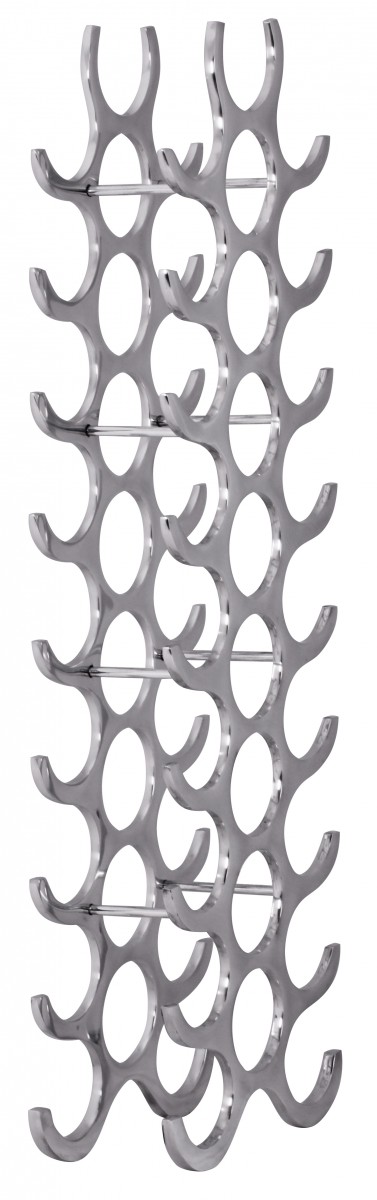 Descubra este suporte para vinhos em alumínio com acabamento prateado, capacidade para 27 garrafas. Ideal para amantes de vinho que desejam combinar elegância e funcionalidade em espaço compacto.