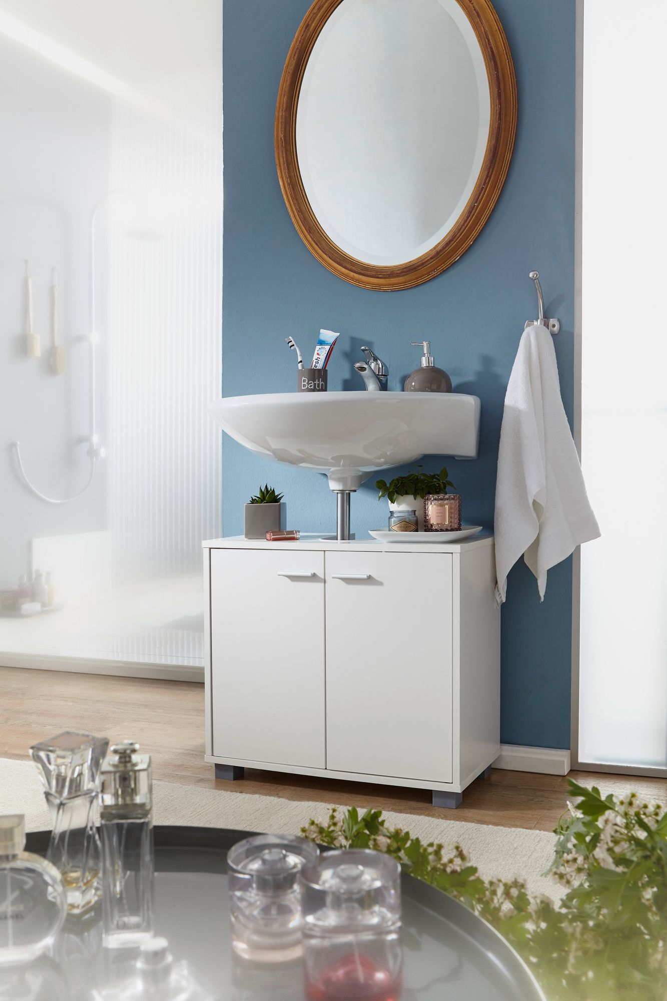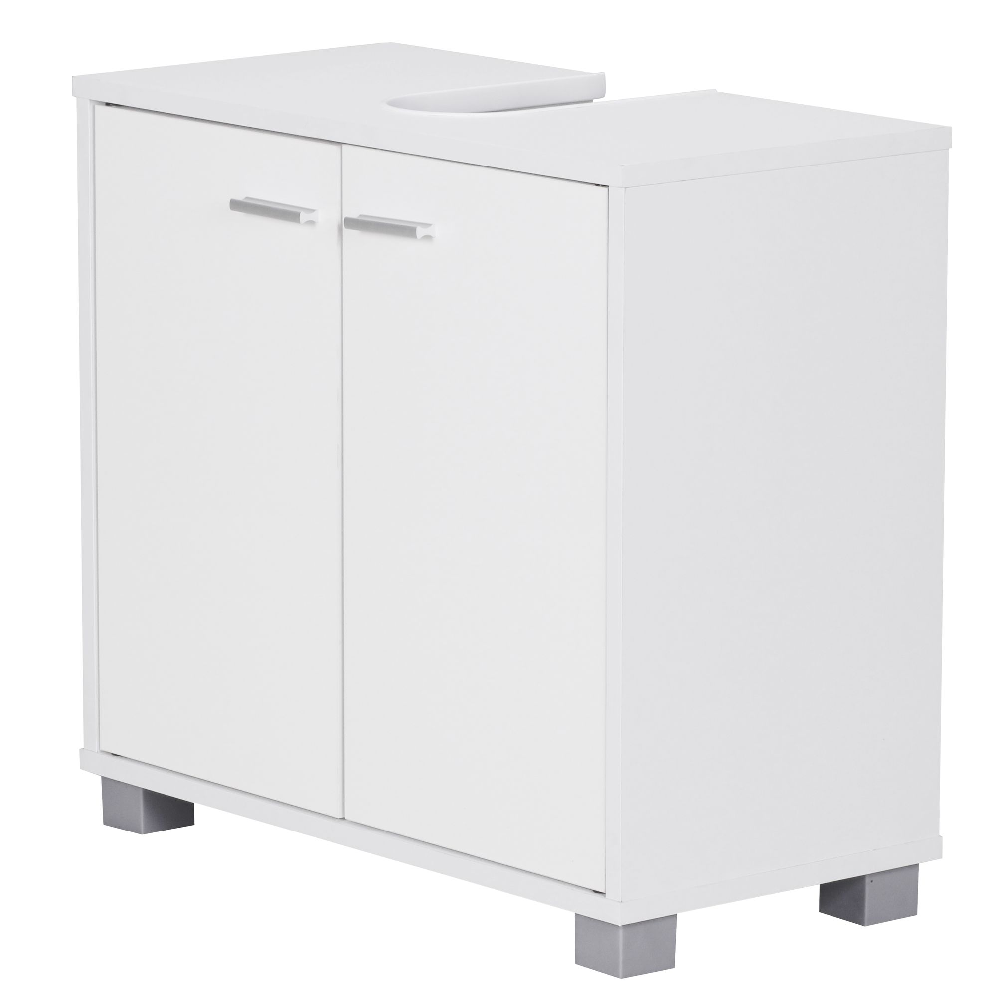 Adicione um toque moderno e funcional ao seu banheiro com este armário sob a pia branco mate, design simples, medidas 60 x 55 x 30 cm. Robusto e com superfície resistente à água e riscos graças a um revestimento de resina melamínica.