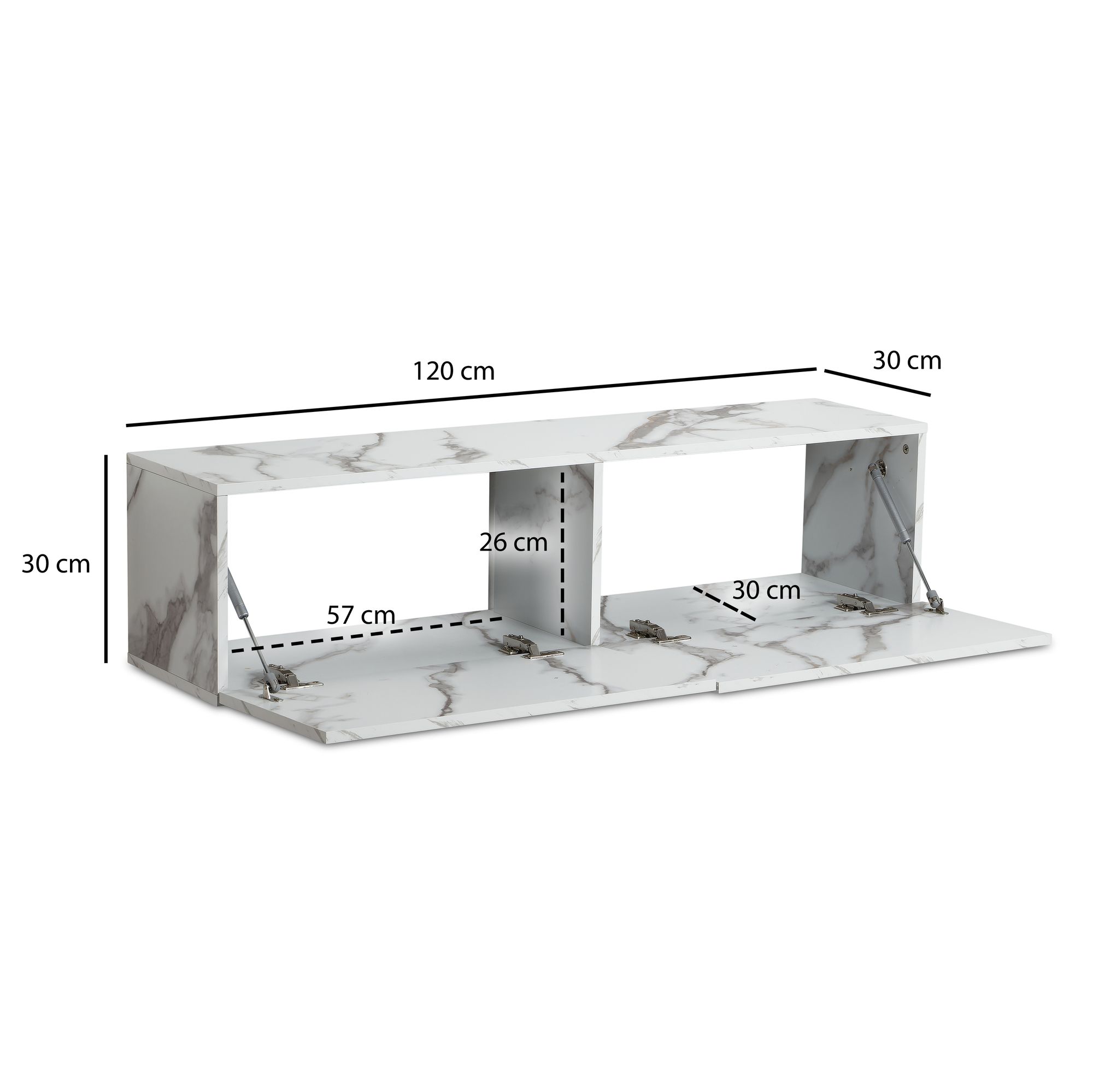 Informações de produto "Lowboard suspenso 120x30x30 cm Branco mate efeito mármore | Móvel TV moderno"