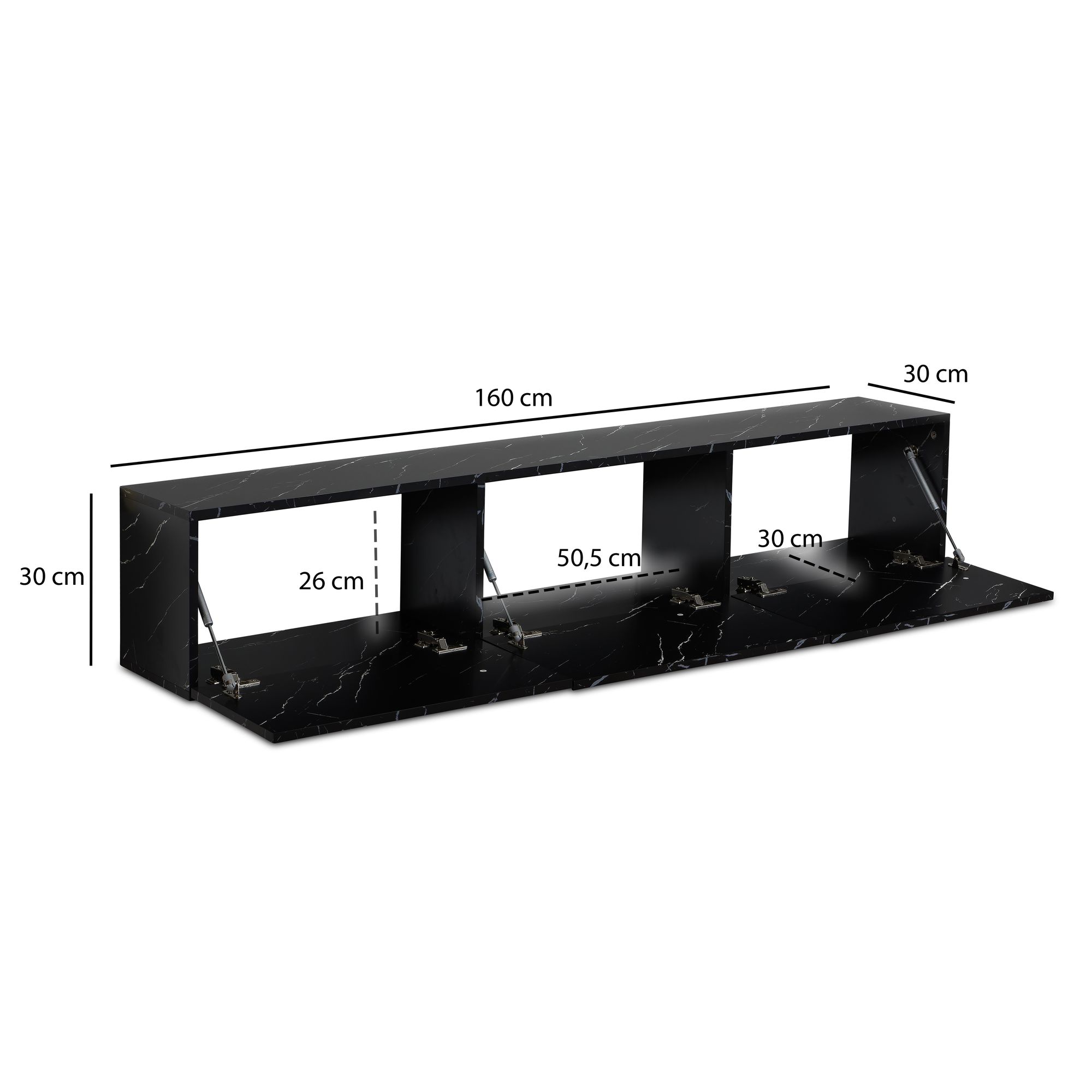 Informações de produto "Lowboard Suspenso Efeito Mármore Preto | 160x30x30 cm | MDF com Revestimento de Melamina"
