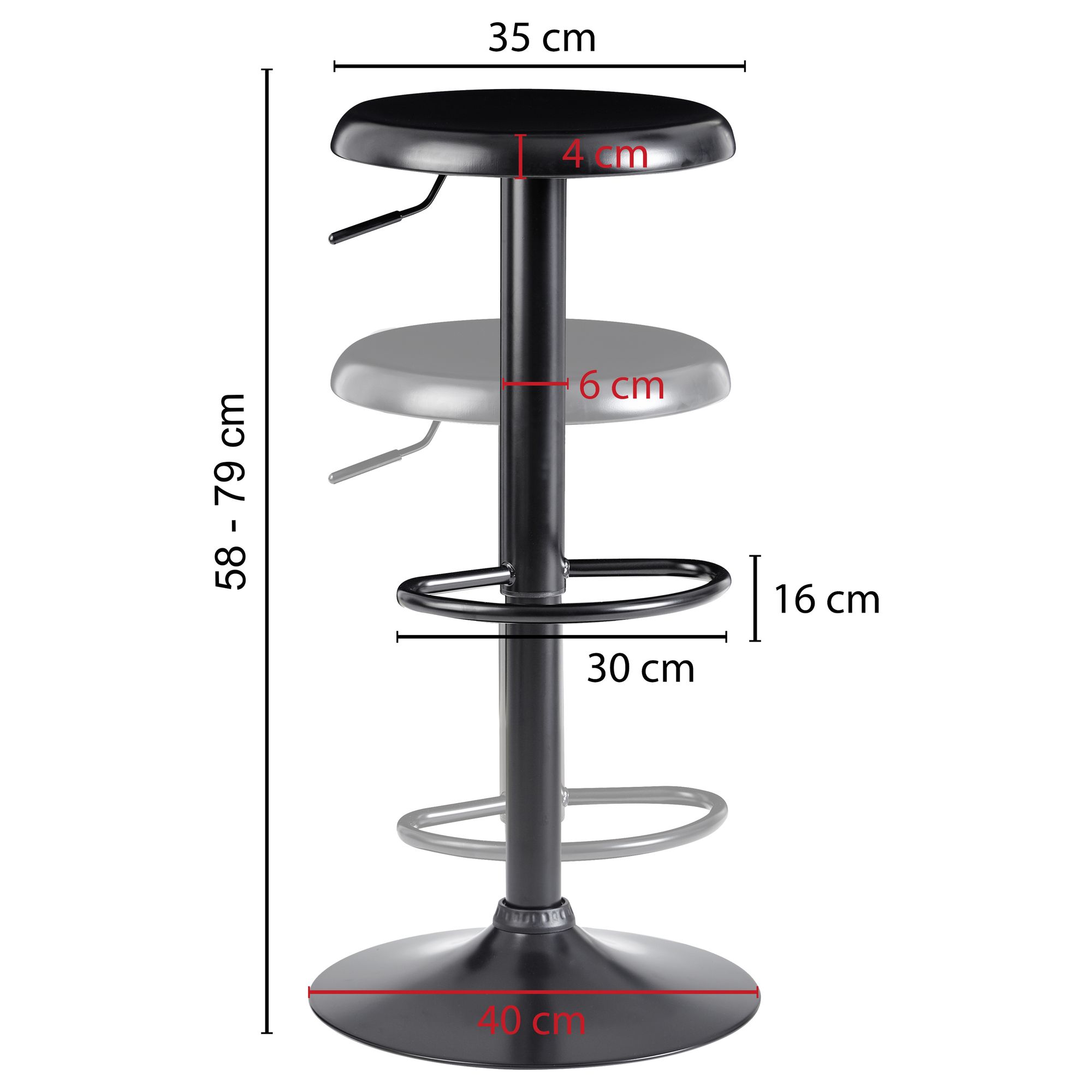 Informações de produto "Banco de bar preto sem encosto | Metal sólido | 40 x 58-79 cm | Capacidade 100 kg"