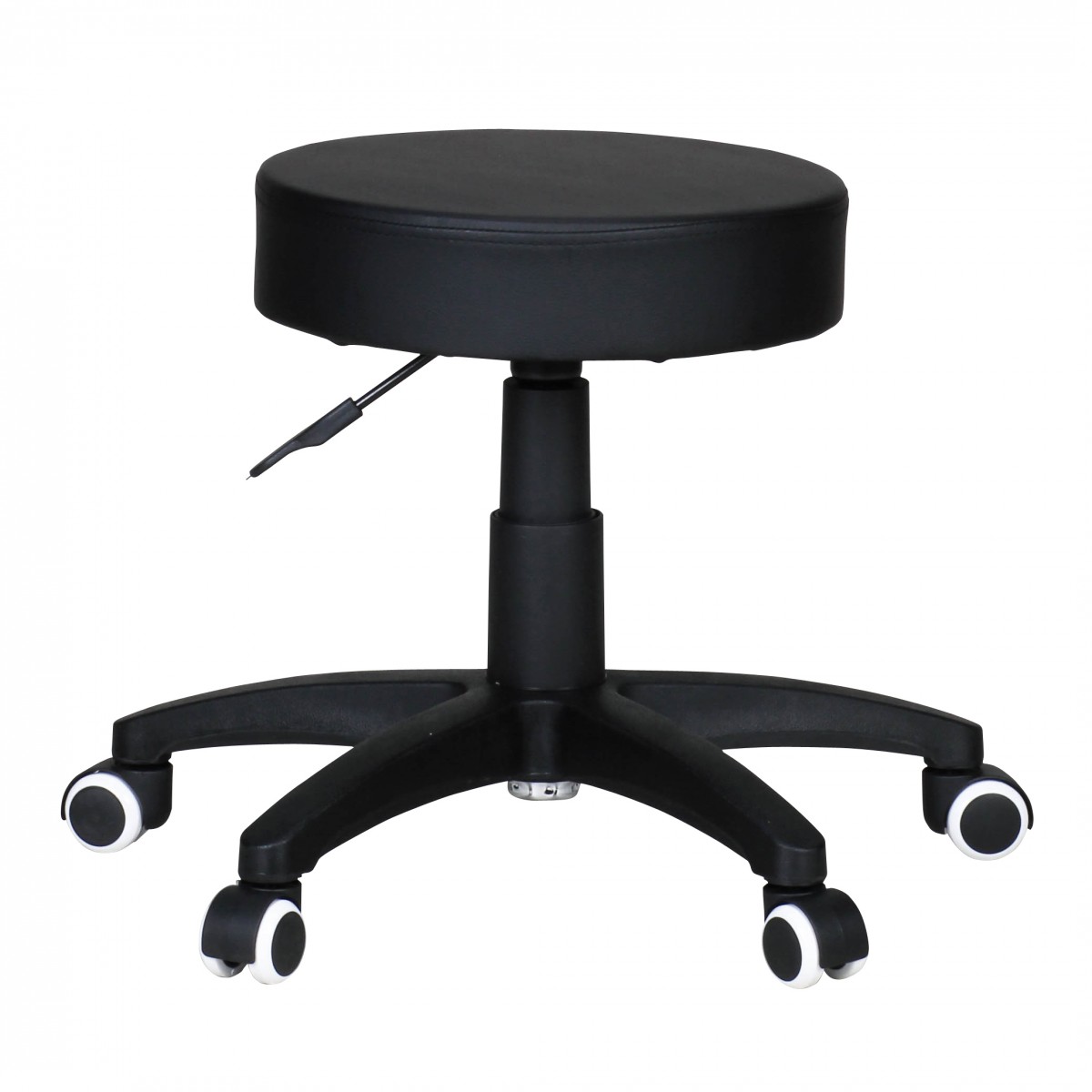 Banco de trabalho design couro sintético preto com rodas | 44-55 cm altura x 35 cm diâmetro