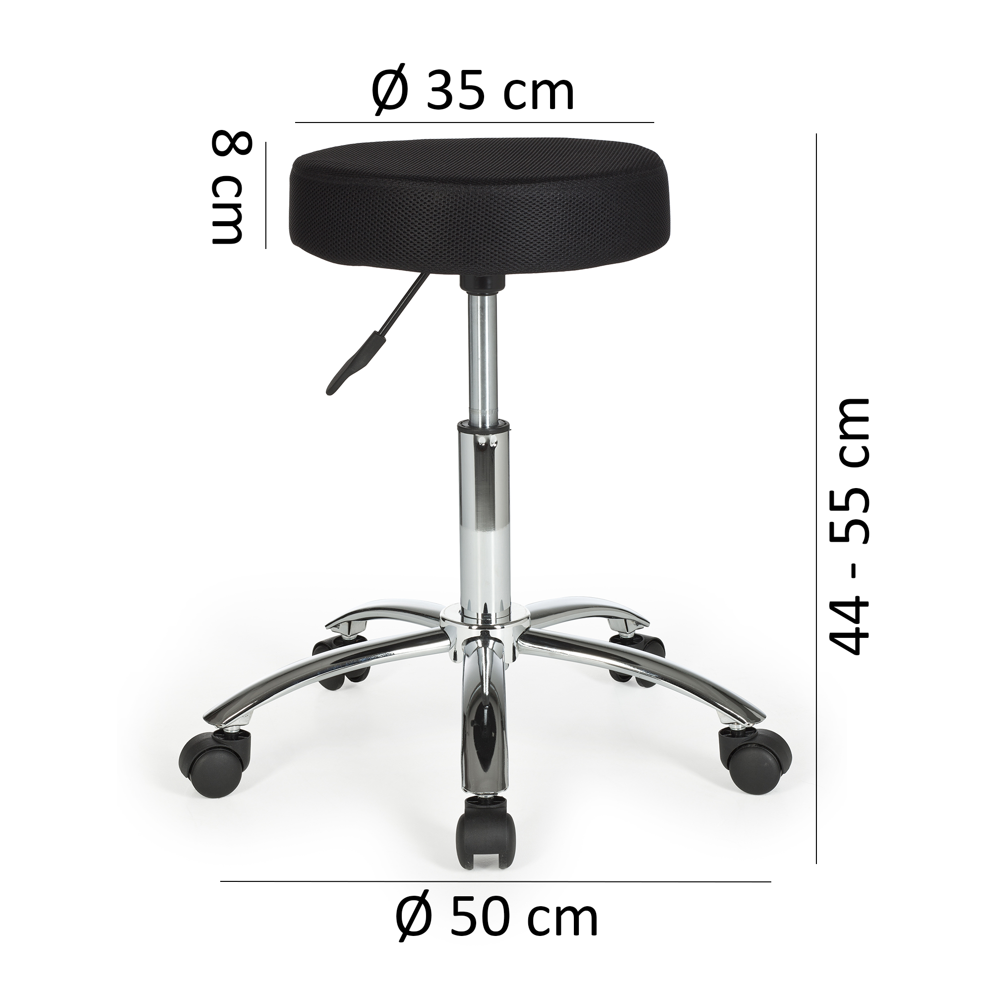 Informações de produto "Banco de trabalho design tecido preto com rodas | 60-70 cm x 55 cm"