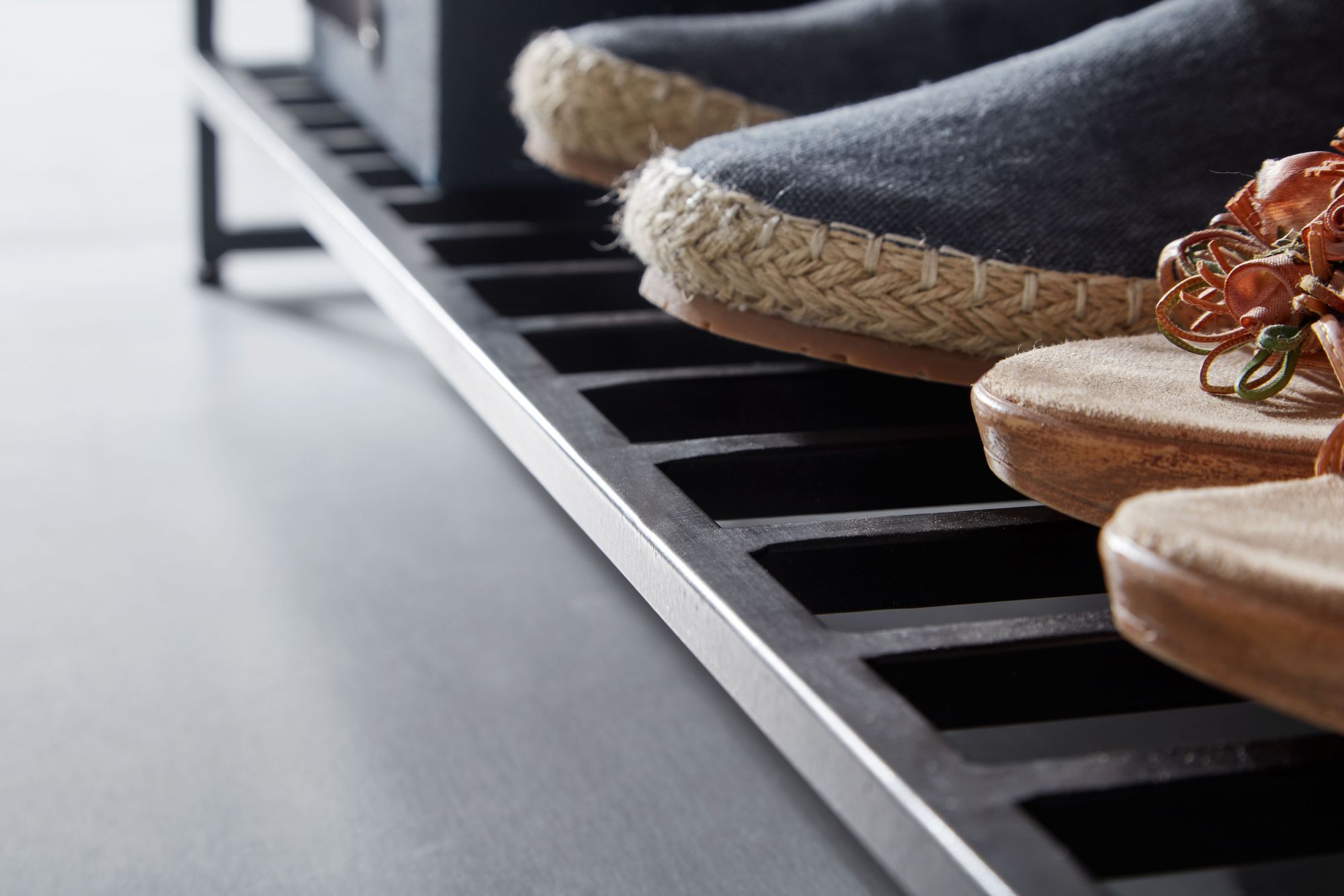 - Estrutura estável com estrutura metálica e pés antiderrapantes que protegem o chão.