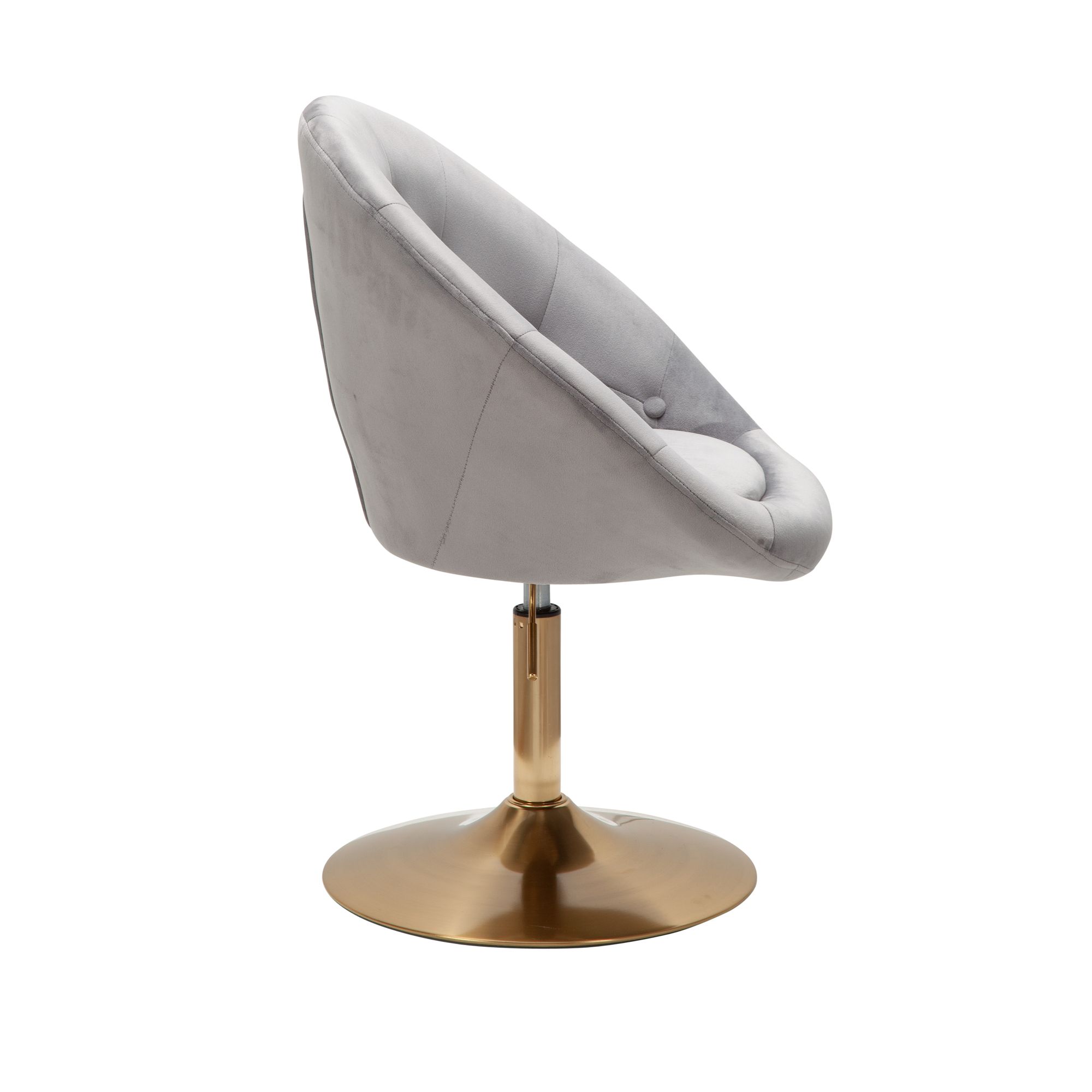 Poltrona lounge de veludo cinza e dourado | Design giratório | 67x80-100x62 cm