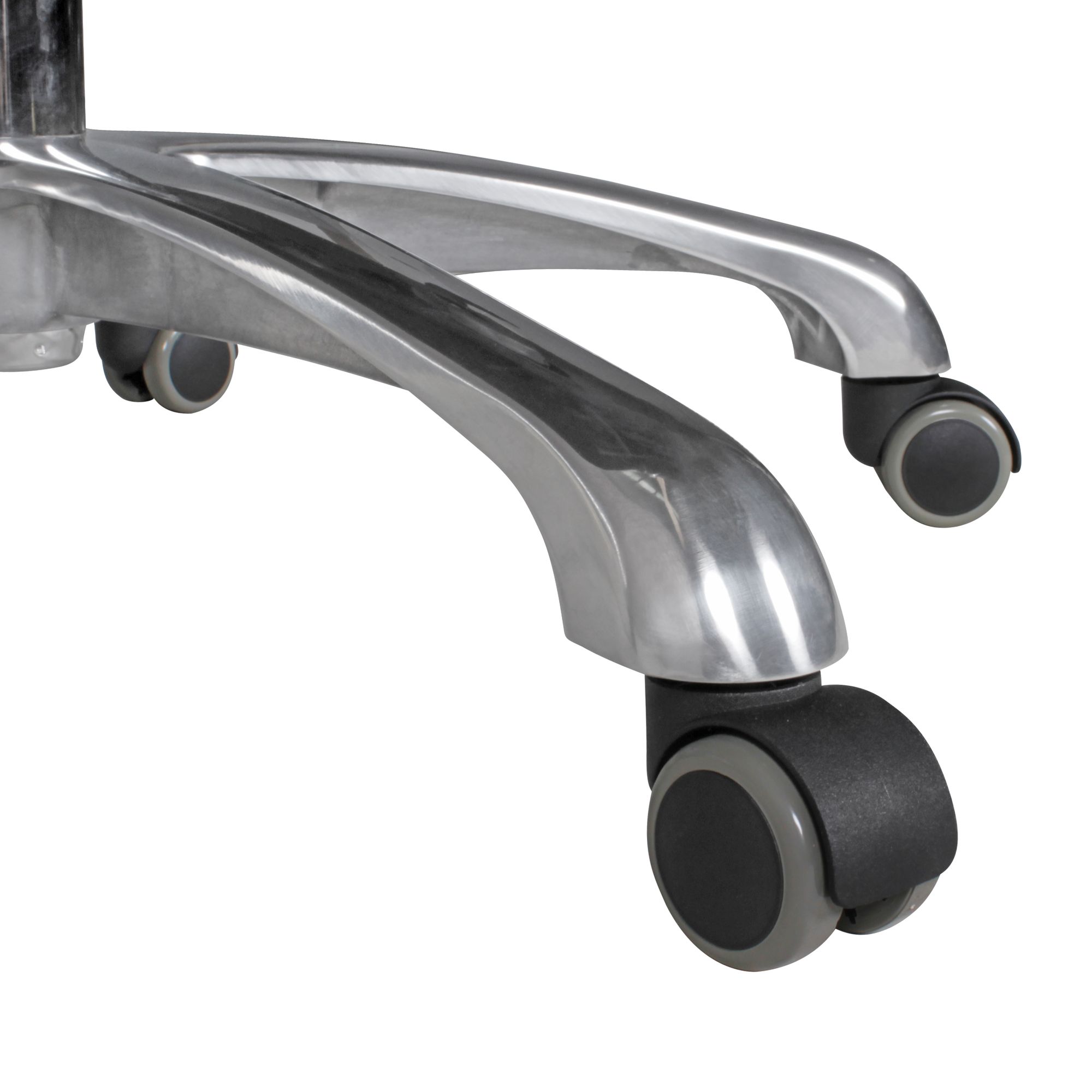 - Alta estabilidade graças a base larga de 70 cm e rodas duplas para pisos duros