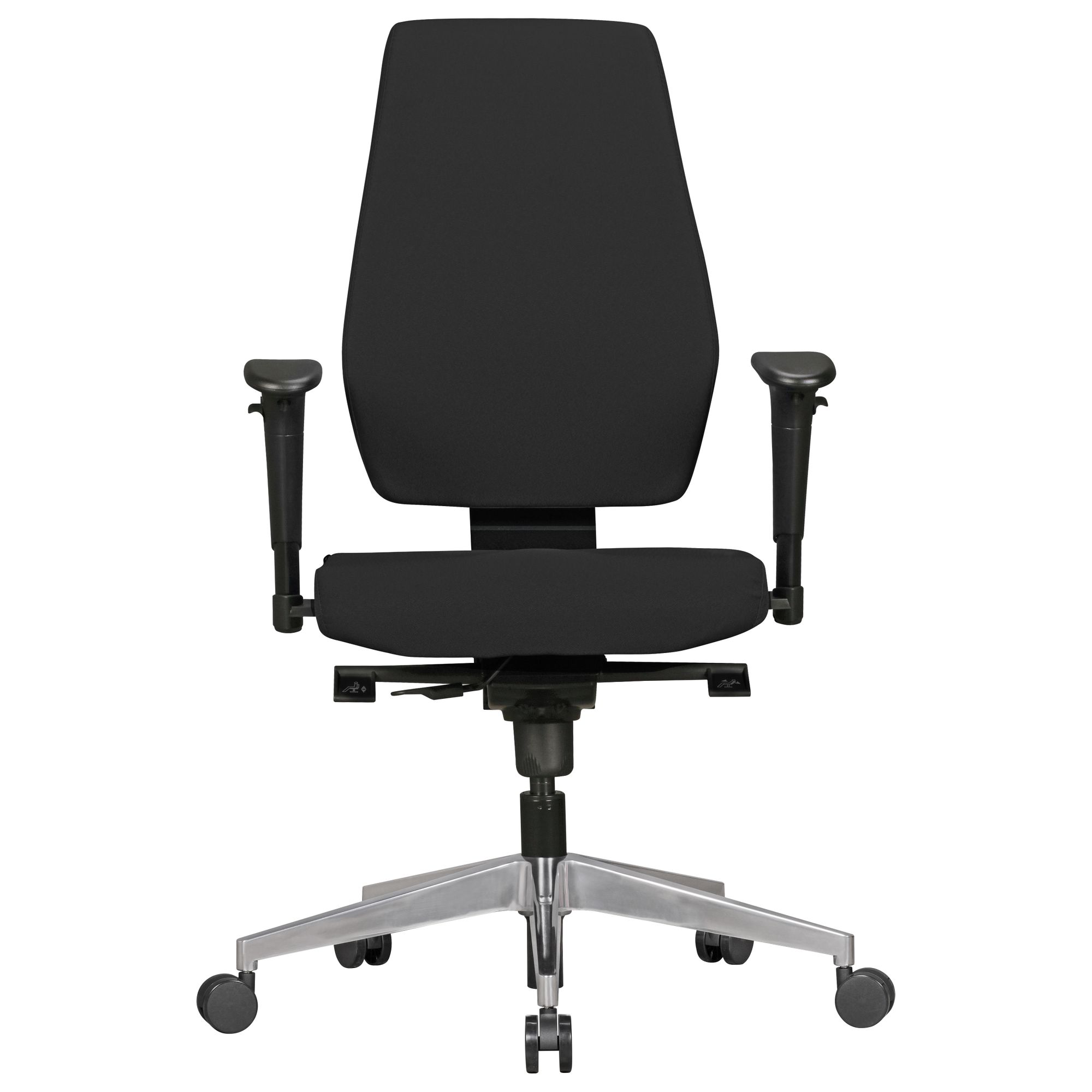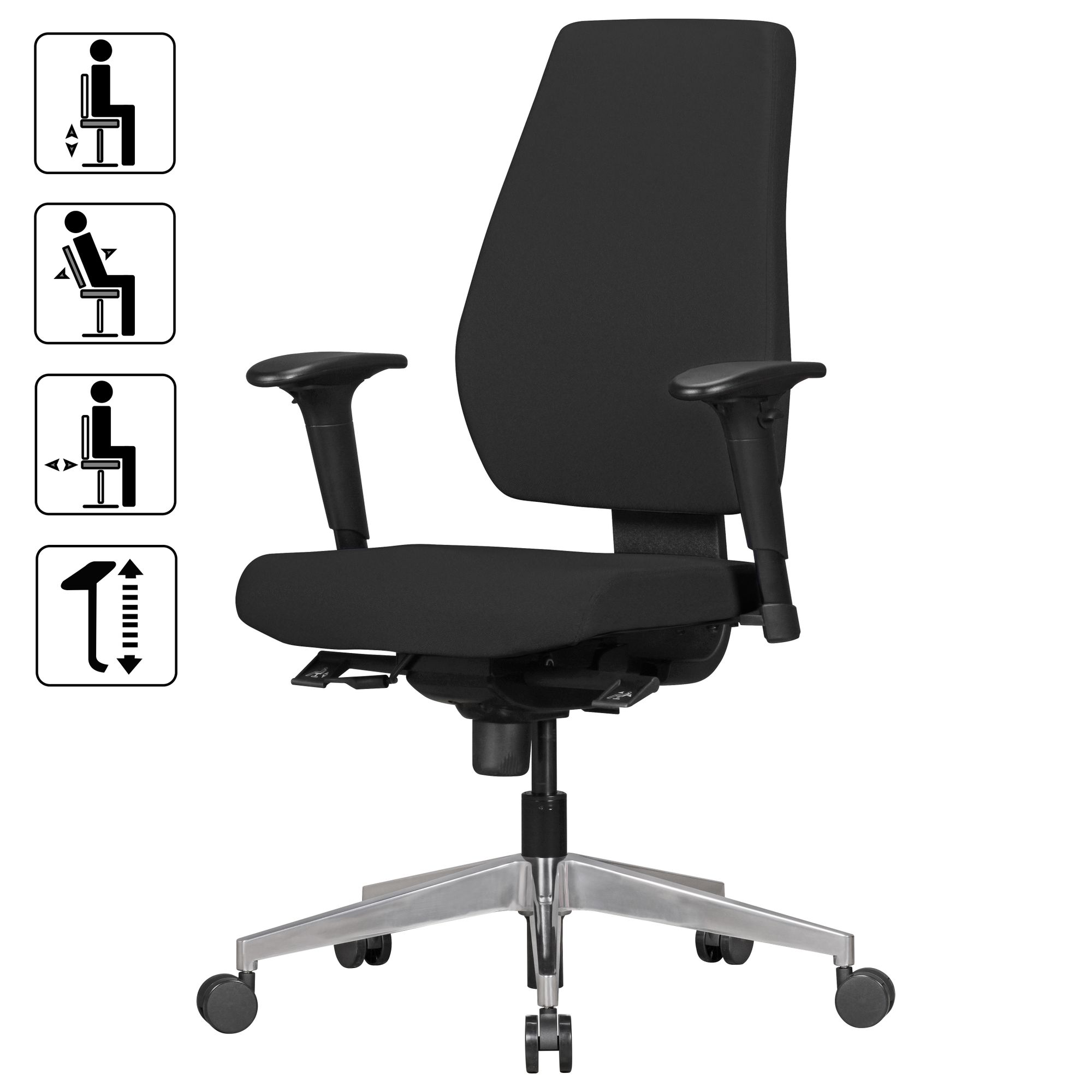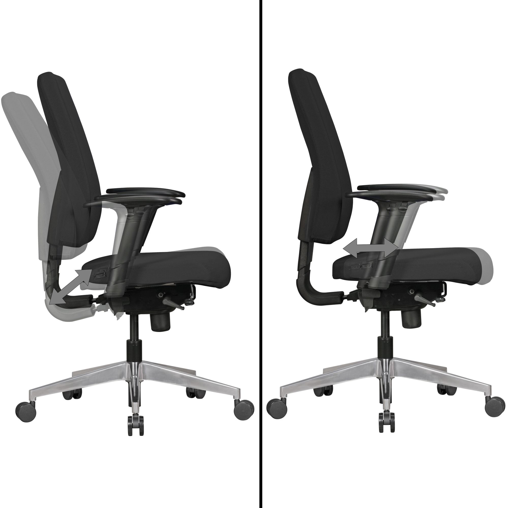 Os apoios de braço ajustáveis em altura e o mecanismo síncrono de 3 pontos proporcionam assento personalizado e suporte lombar eficaz. A profundidade do assento pode ser ajustada em 5 cm para maior conforto.