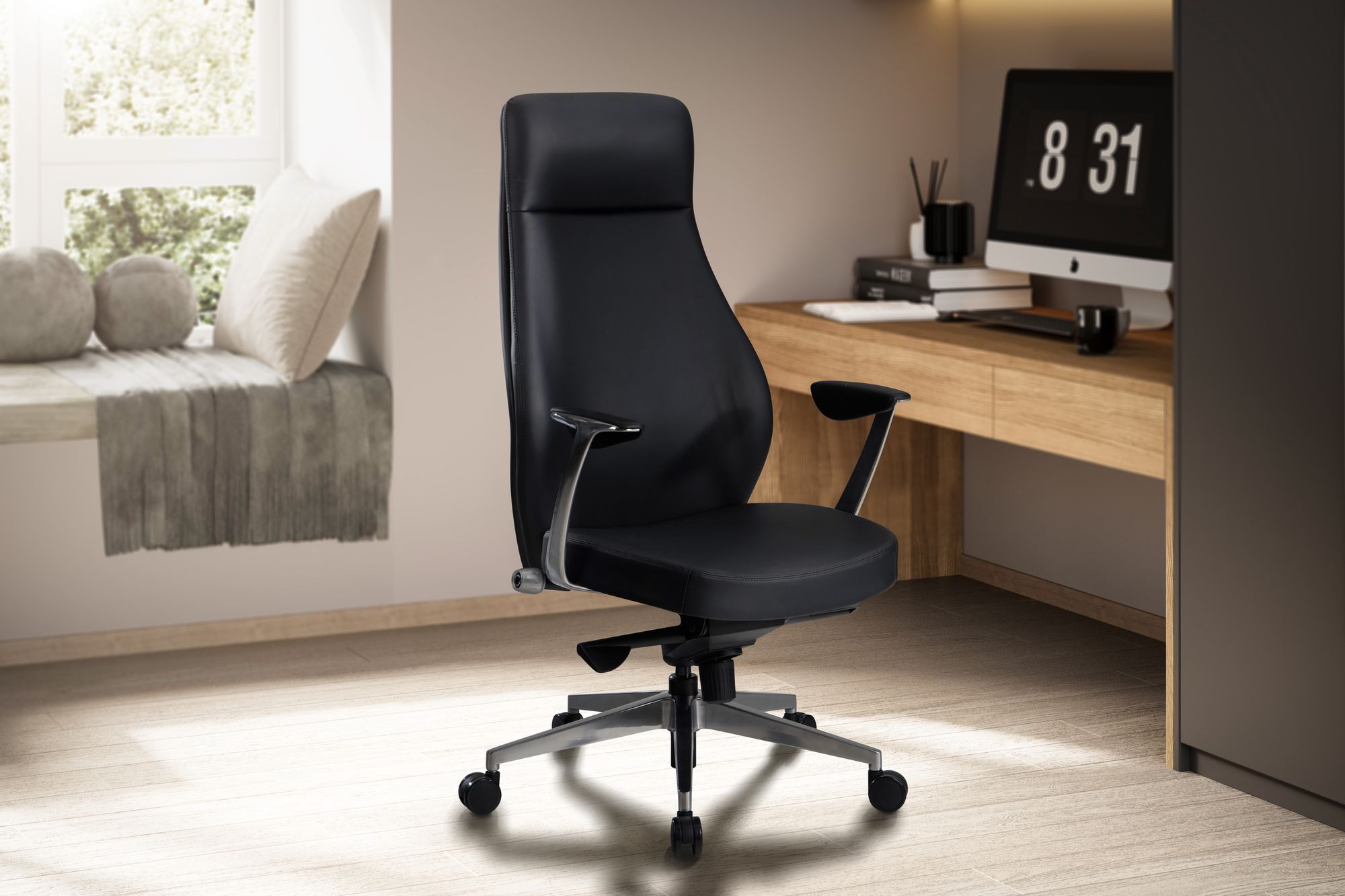 Cadeira de escritório preta em couro sintético | Design executivo ergonômico | Alt. 119-125 cm Larg. 74 cm Prof. 74 cm