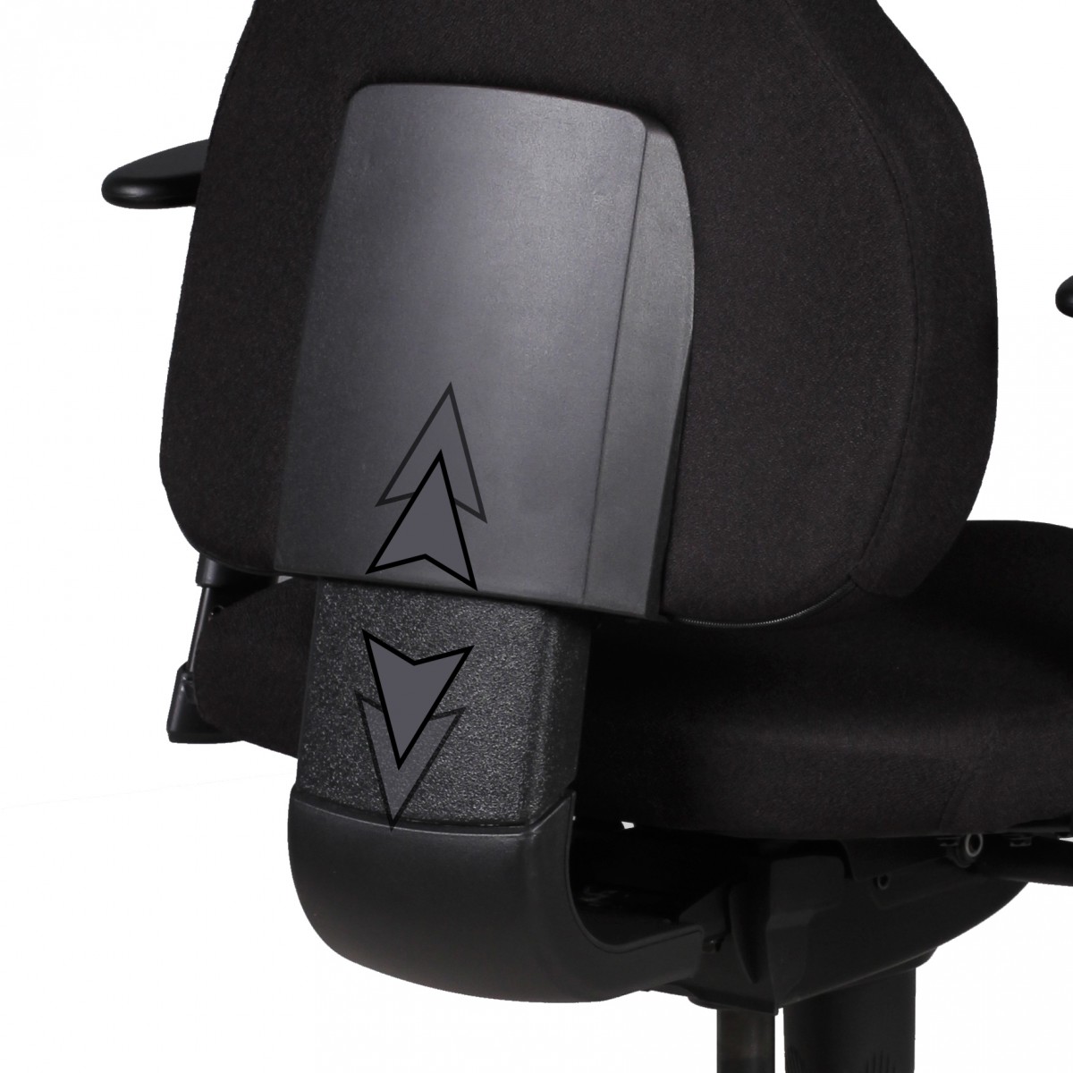 O encosto é ajustável em altura em 5 posições (máx. 5 cm) e o mecanismo sincronizado de 3 pontos permite bloquear a inclinação do encosto em 3 posições, oferecendo flexibilidade ergonómica. A profundidade do assento também é regulável em 5 cm.