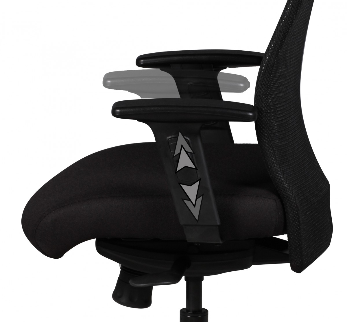 Os apoios de braços são reguláveis em altura em 7 níveis com almofadas Softpad. A altura do assento varia entre 47 e 59 cm. A base resistente em nylon, com 70 cm de diâmetro, garante máxima estabilidade.