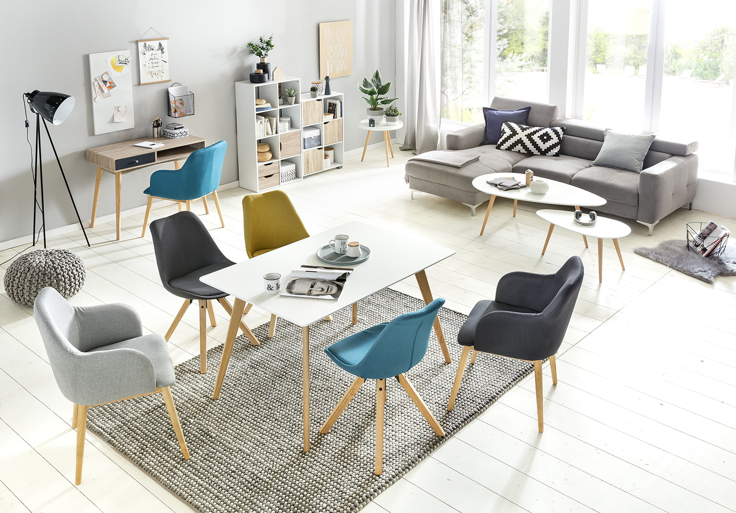 As pernas em madeira maciça Hevea com acabamento carvalho garantem estabilidade perfeita e design elegante, enquanto protetores de feltro protegem seus pisos.