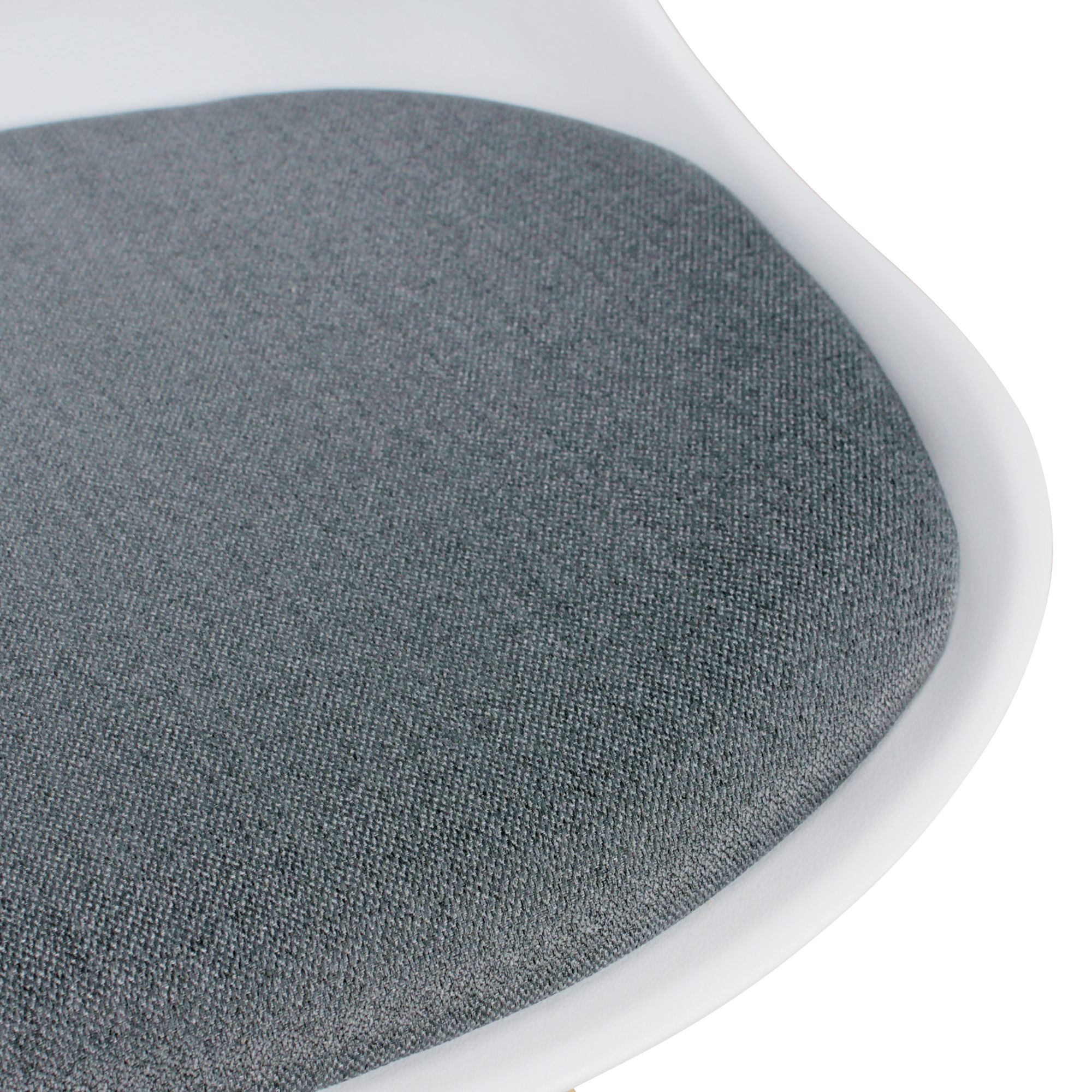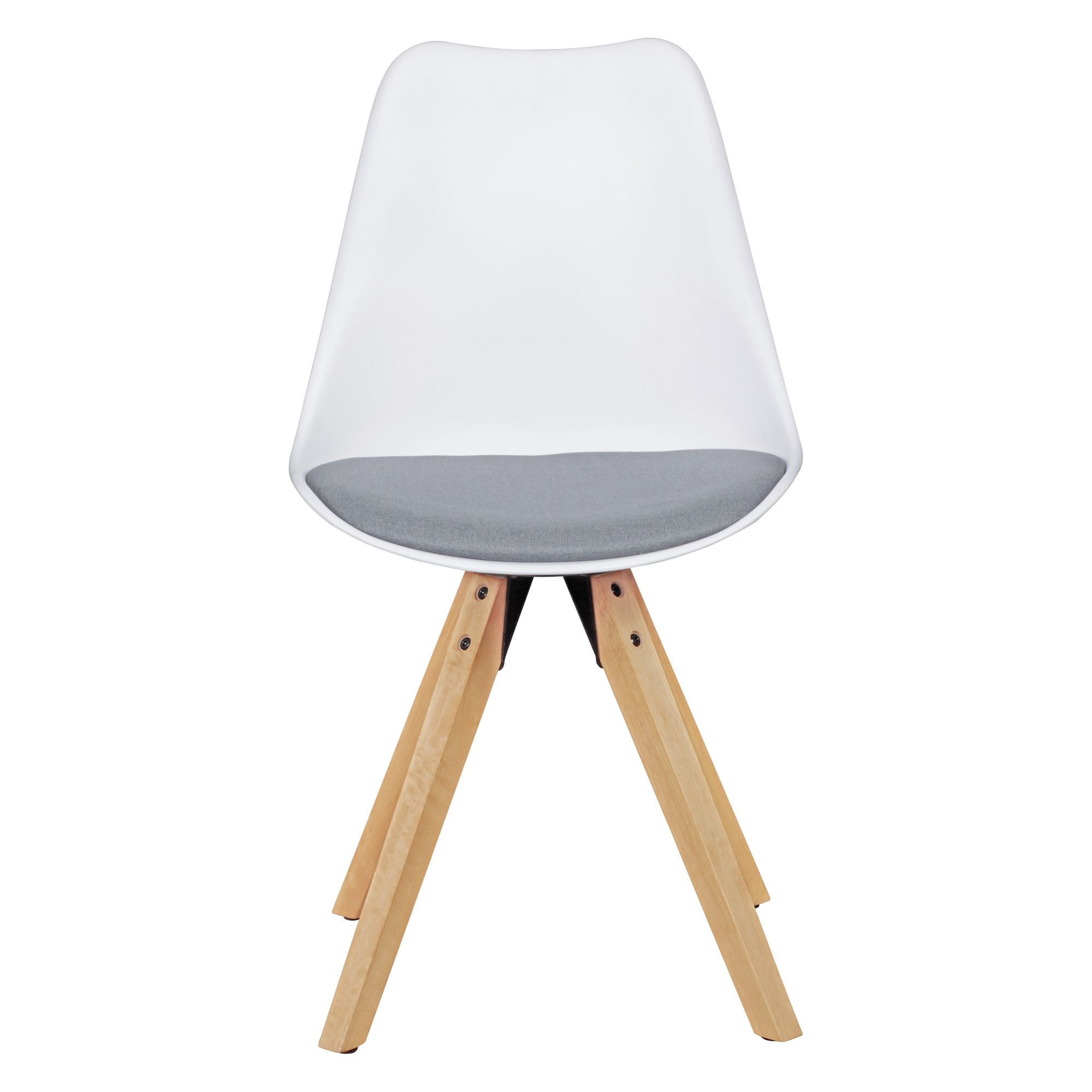 Conheça este conjunto de 2 cadeiras de jantar retrô LIMA que combina design escandinavo com conforto ideal graças às almofadas estofadas em tecido cinza e suas elegantes conchas brancas.