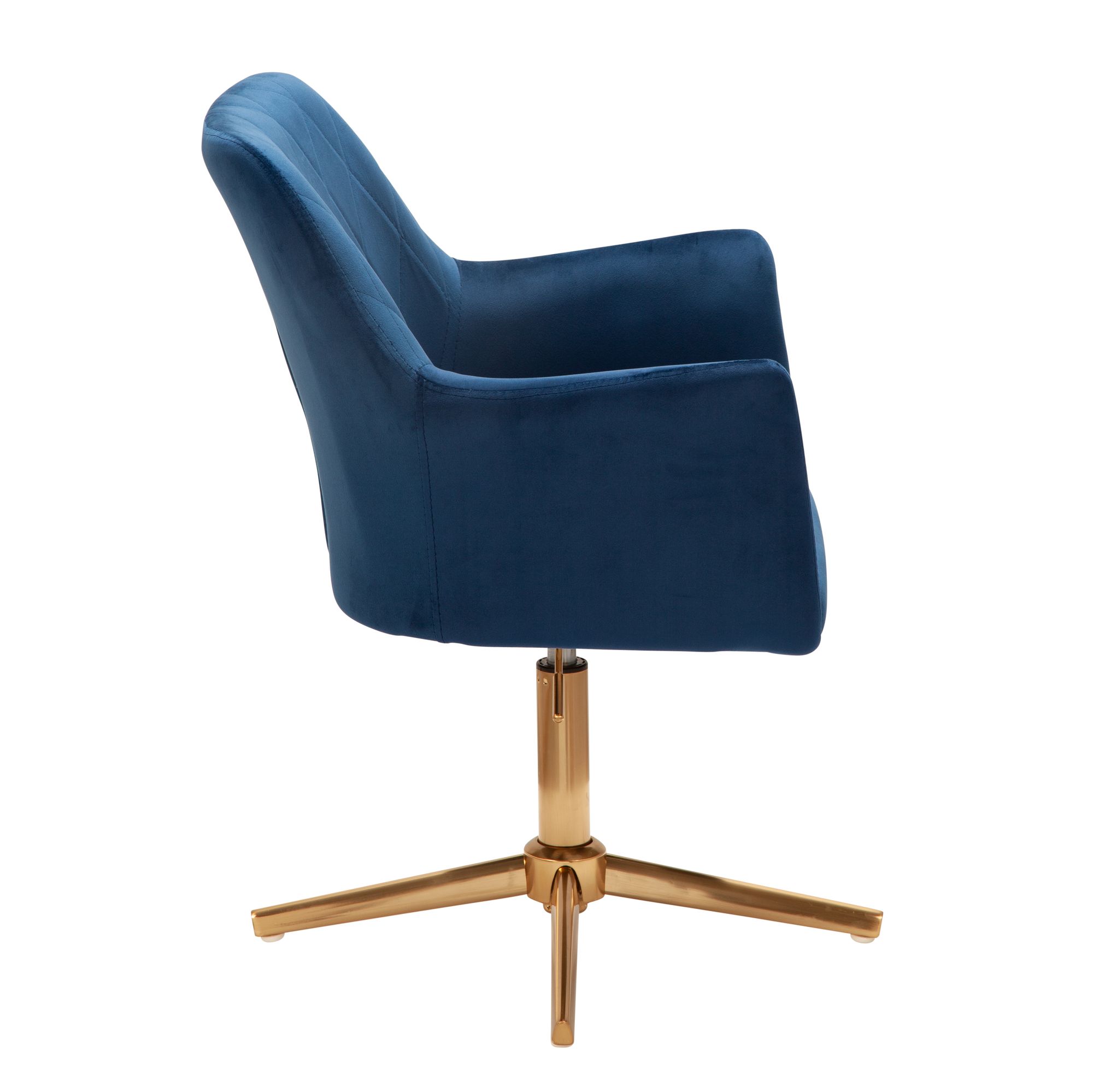 Cadeira de escritório em veludo azul escuro | Estrutura metálica dourada | Altura ajustável 80-97 cm