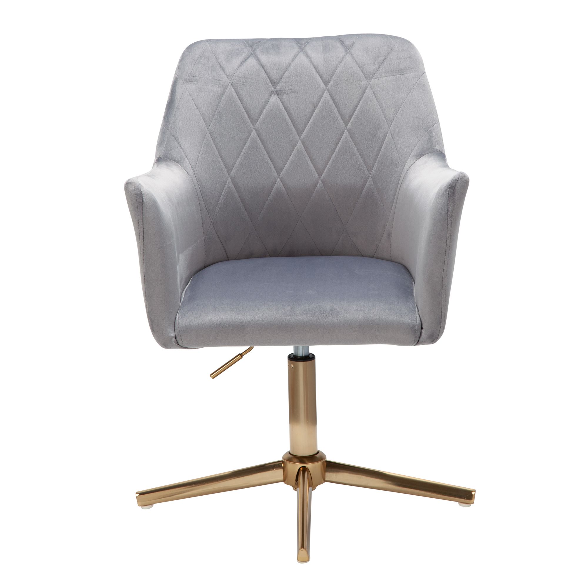 Cadeira de escritório veludo cinza com braços | Metal dourado | Altura ajustável 80-97 cm
