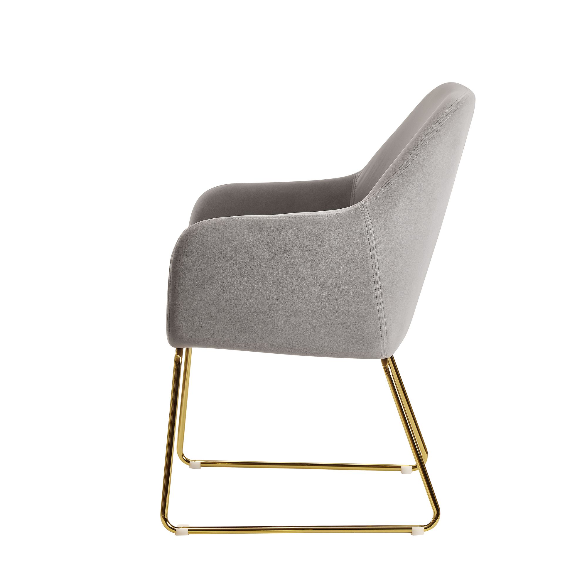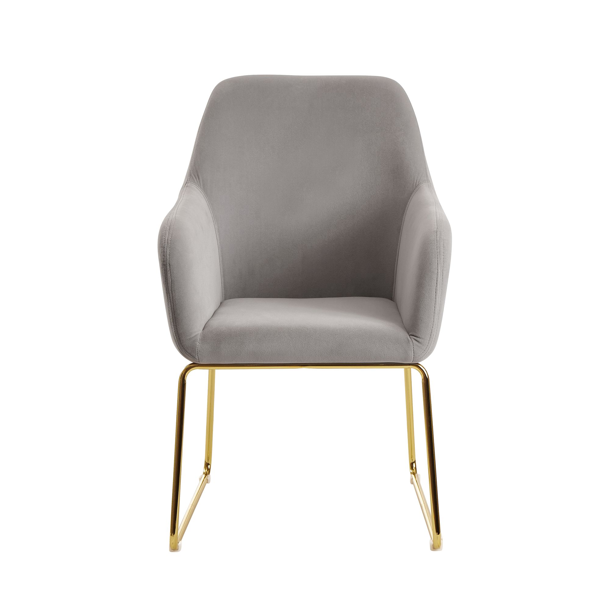 Cadeira de jantar de sala de estar cadeira estofada de cozinha em veludo / metal cinza claro