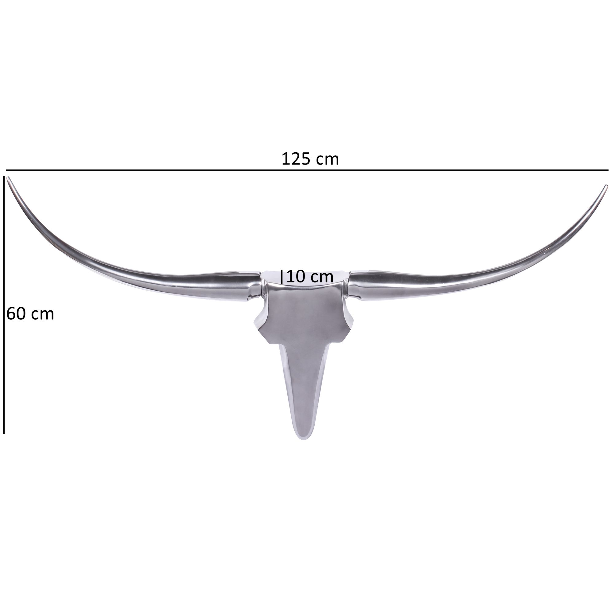 Informações de produto "Chifres de Touro em Alumínio Prateado | 125x60x10 cm | Decoração de Parede Moderna"