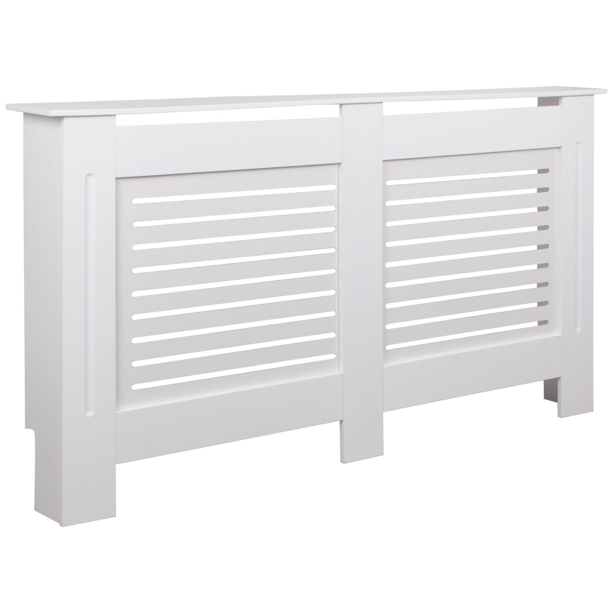Cobertura para radiador MDF branco mate | 152x83x19 cm | Design moderno com lâminas