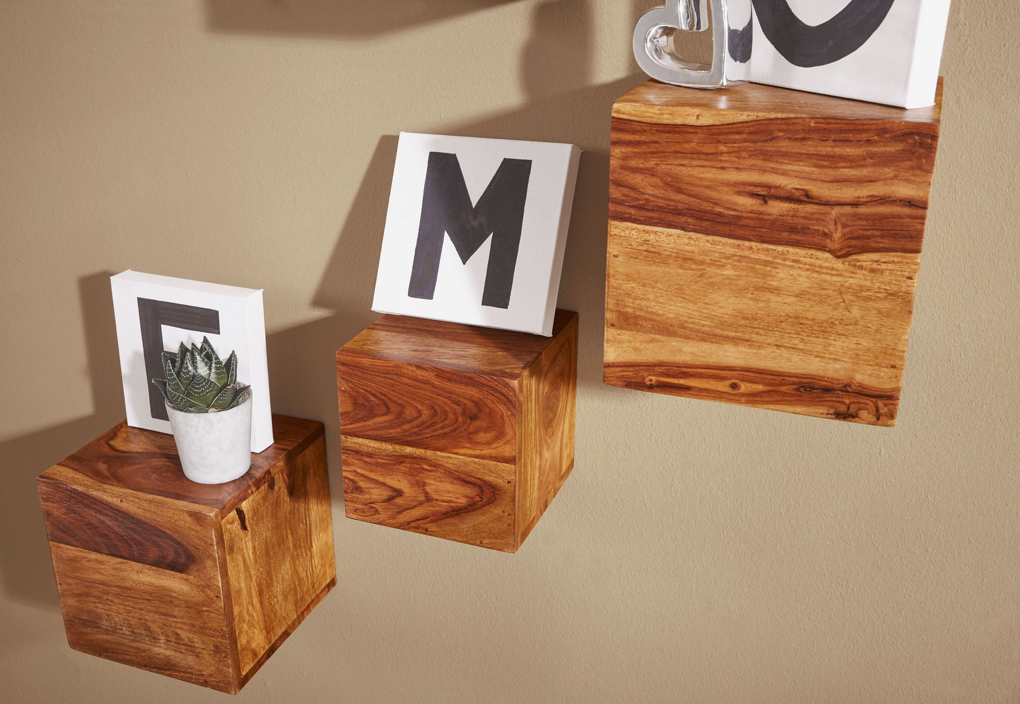 Informações de produto "Conjunto de 4 prateleiras MUMBAI | Madeira maciça Sheesham natural | 25x25x25 cm & 20x20x20 cm"