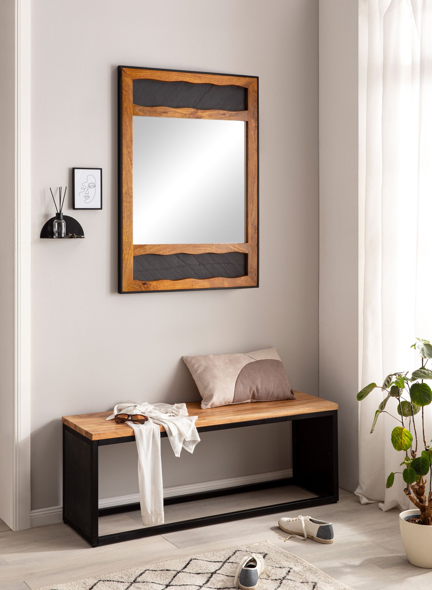 - Um espelho de parede sem decoração