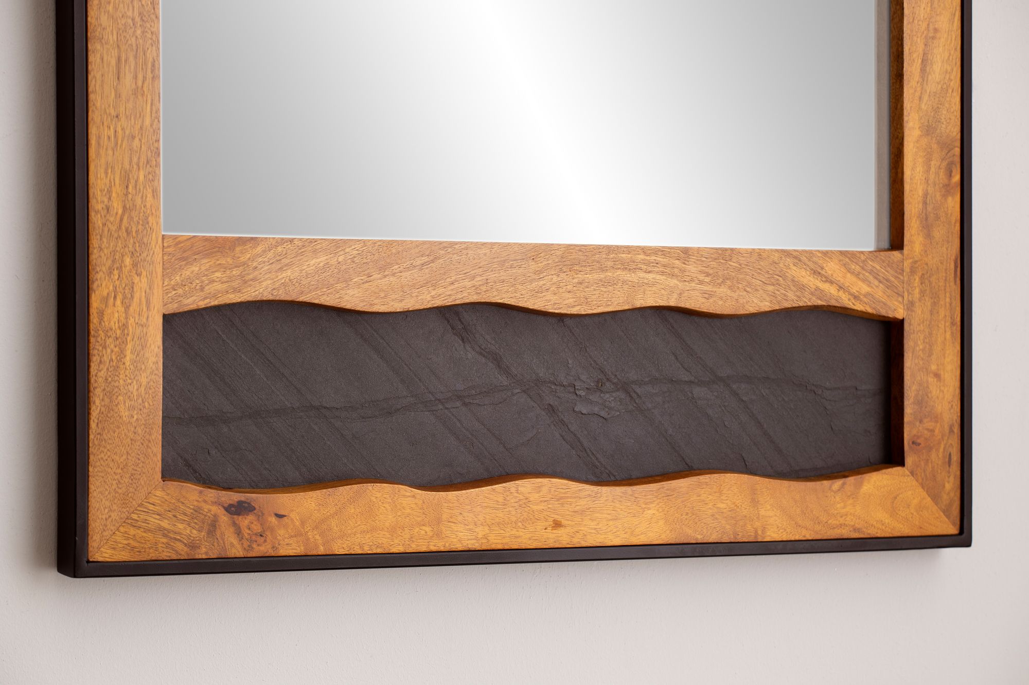 - Estrutura: madeira maciça de manga, revestida com laca transparente