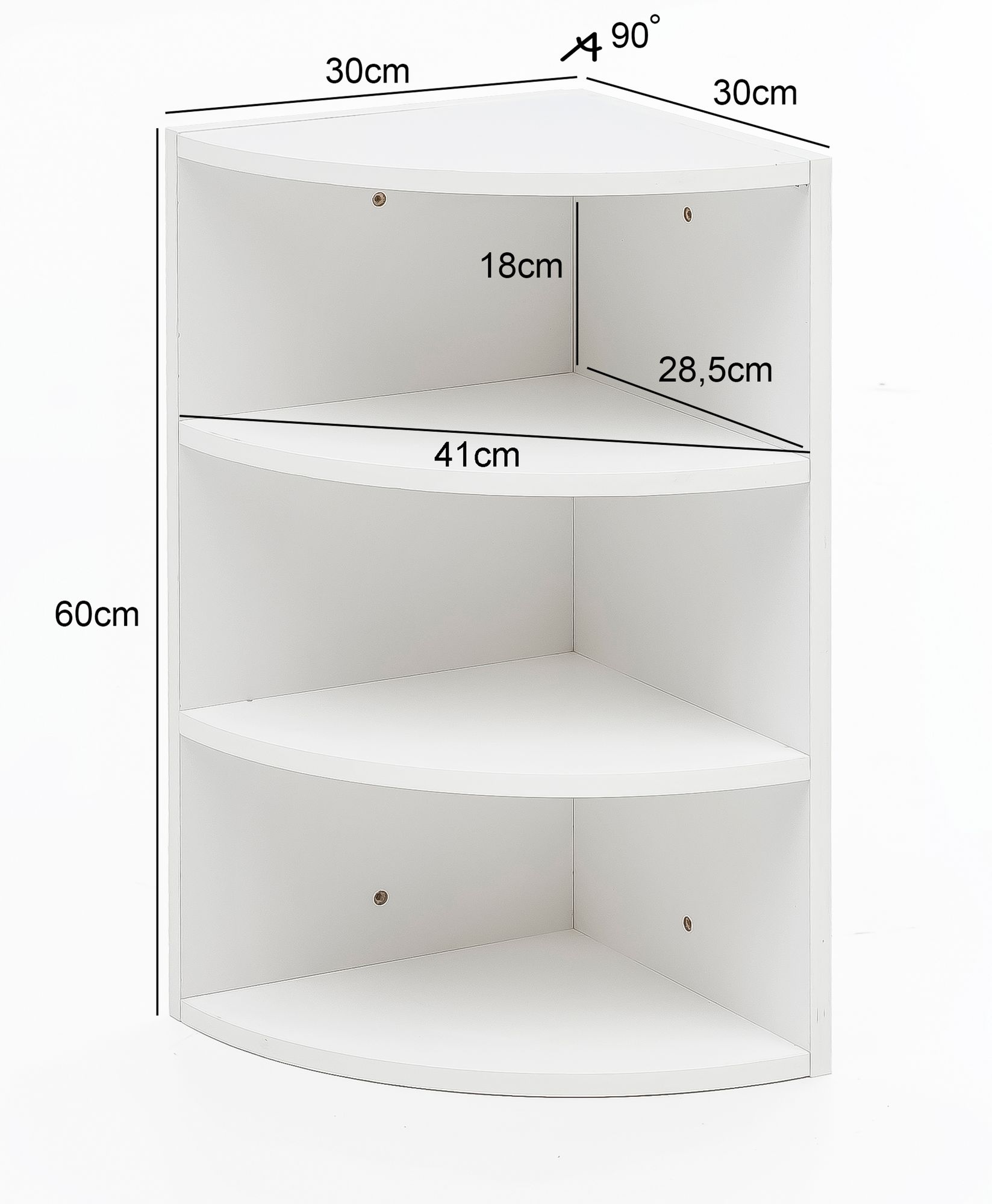 Informações de produto "Prateleira de Canto Madeira Branca 30x60x30 cm | 3 Prateleiras Abertas | Móvel Suspenso Moderno"