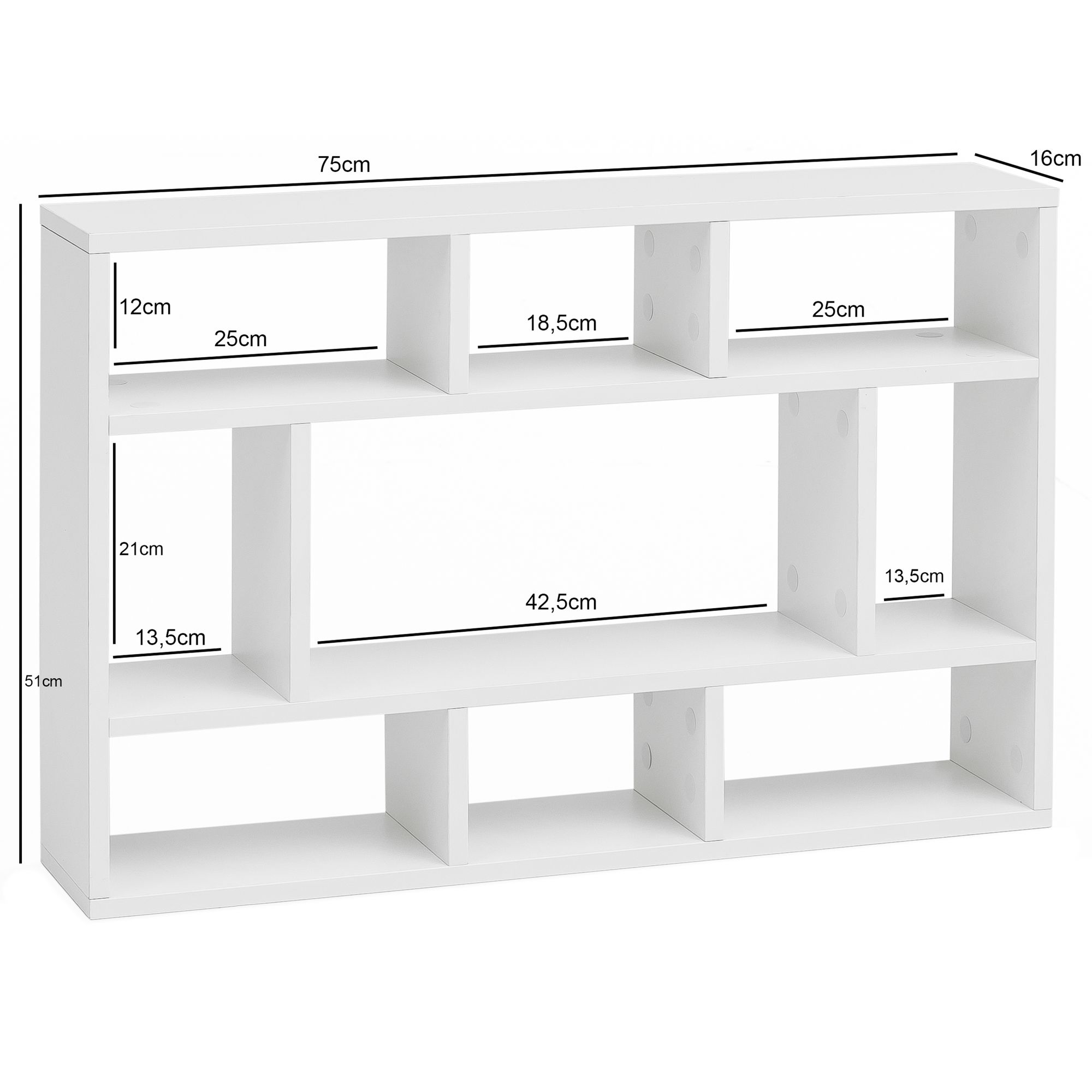 Prateleira de parede | Aglomerado revestido com melamina | Branco | 75x51x16 cm