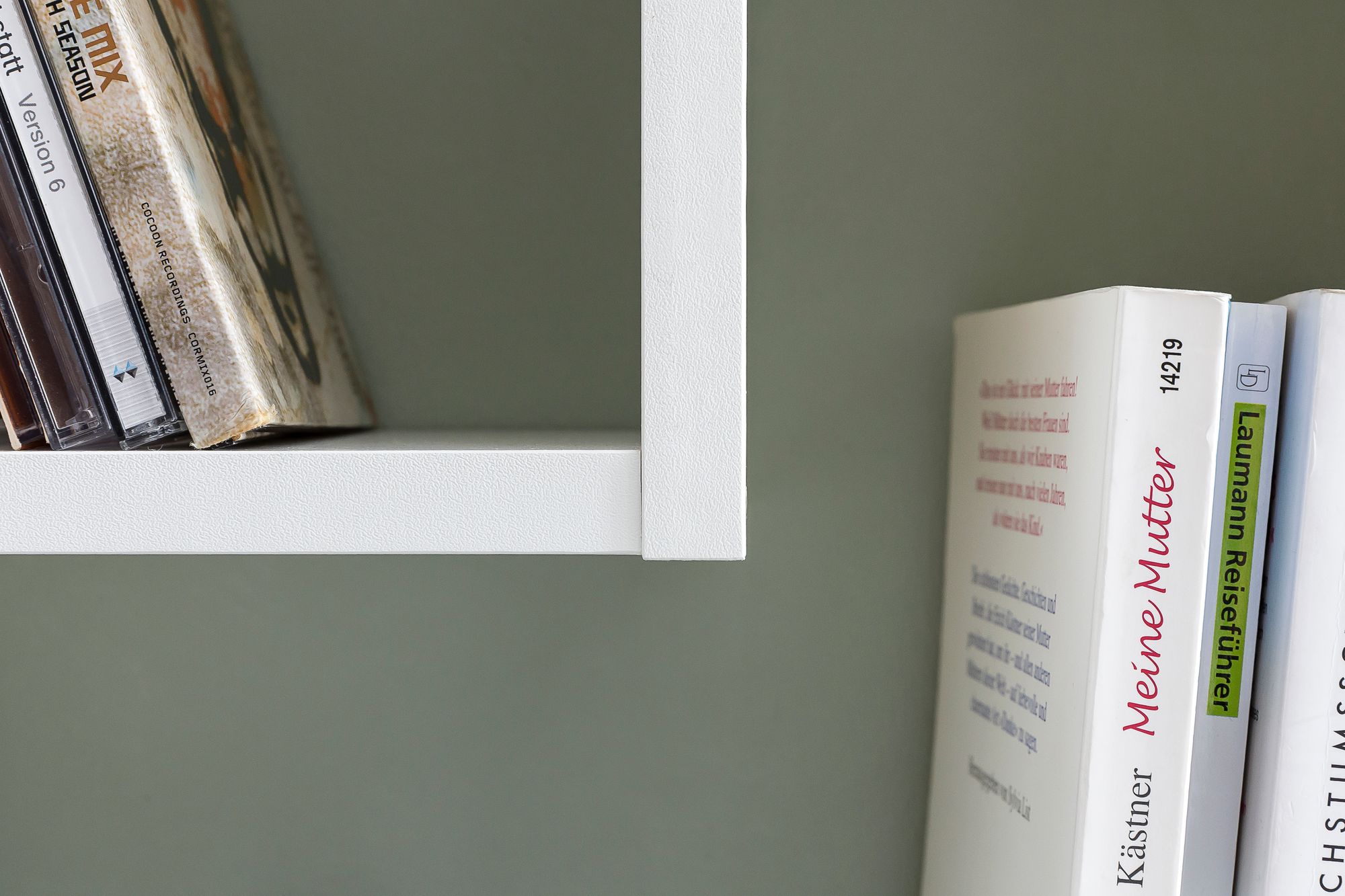 Prateleira de parede branca que combina estilo moderno com funcionalidade. Feita em painel de partículas de 16 mm com acabamento branco, possui cinco compartimentos de diferentes tamanhos para livros, decoração e acessórios.