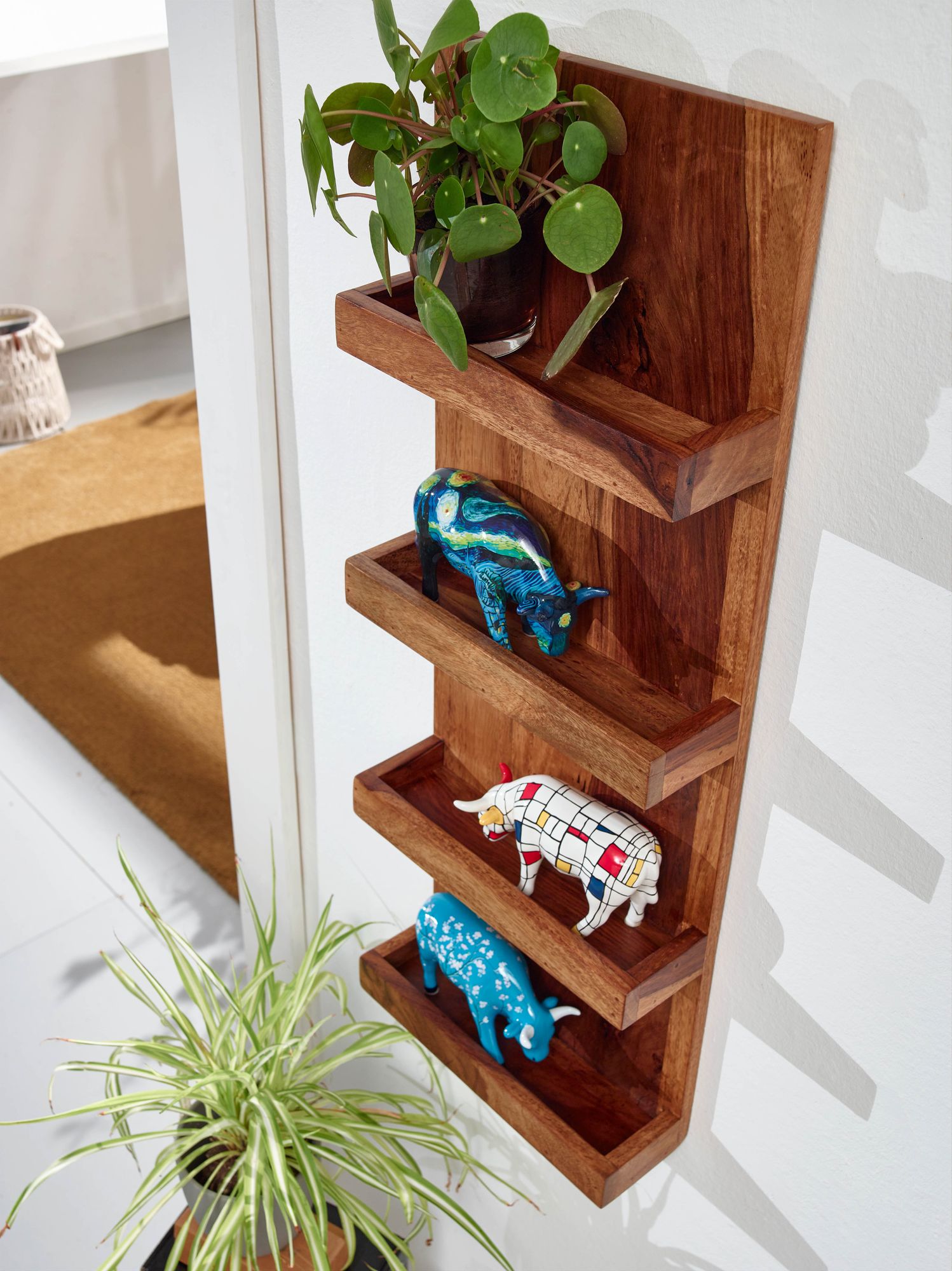 Esta prateleira de parede em madeira maciça Sheesham adiciona um toque natural à sua decoração com um design limpo e quatro compartimentos práticos. O acabamento castanho escuro destaca o belo veio da madeira.