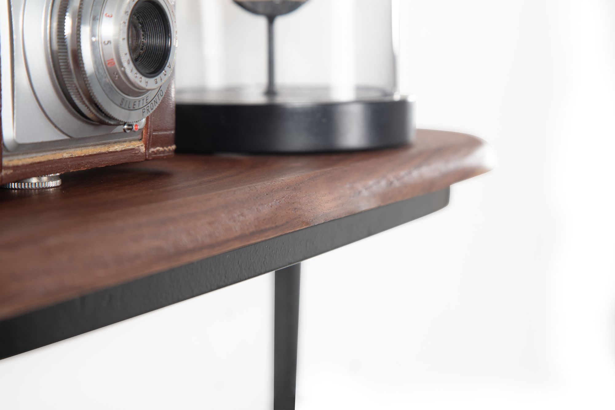 - Composição: prateleira em madeira maciça de sheesham com verniz transparente, estrutura de ferro pintado a pó