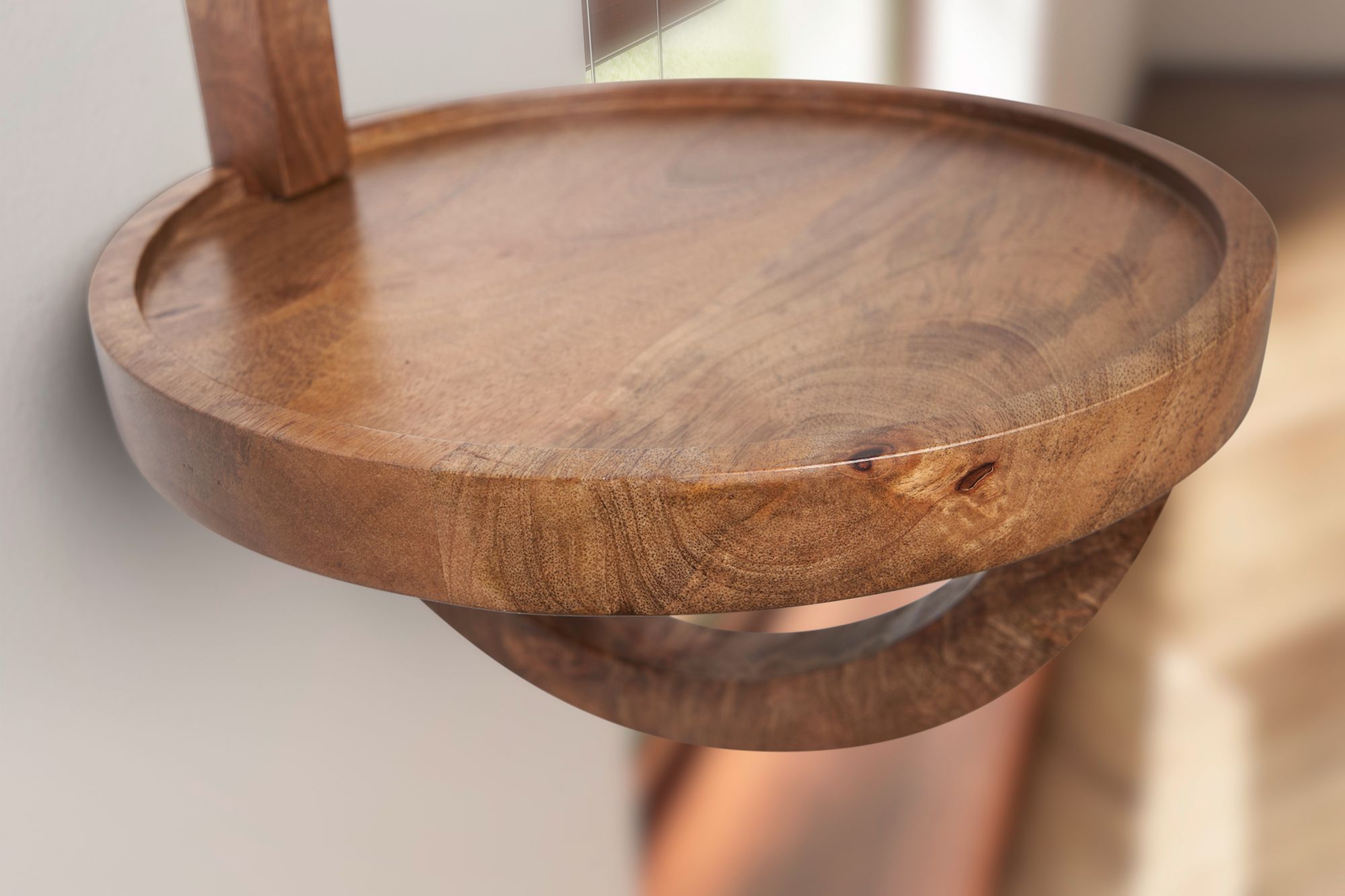 Informações de produto "Prateleira de parede redonda em madeira maciça de manga | Castanho escuro | 30x33x30 cm"