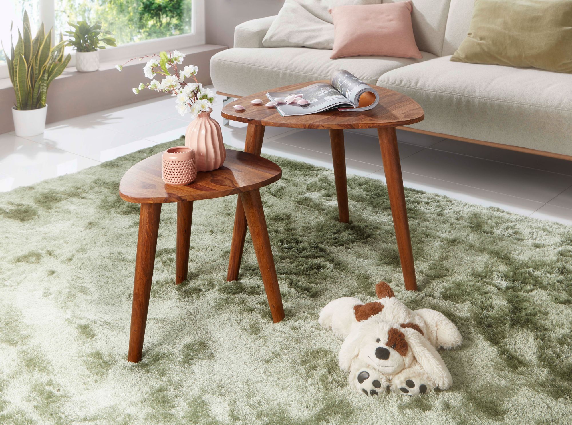 Conjunto de 2 mesas auxiliares em madeira maciça Sheesham | Cor madeira natural | Dimensões 60x54x60 cm e 42,5x45x42,5 cm