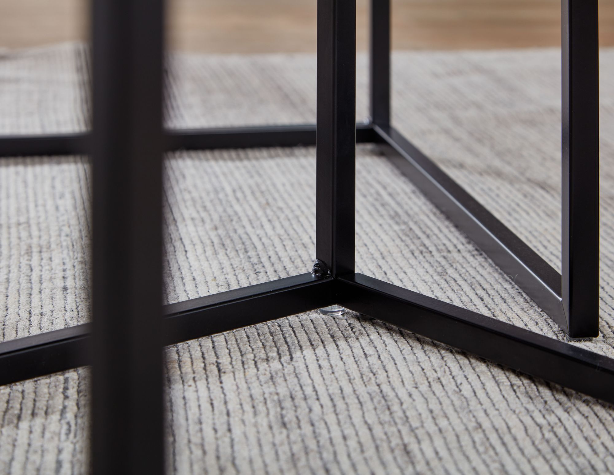 Adicione modularidade e estilo industrial ao seu espaço com este conjunto de 2 mesas auxiliares pretas em aço lacado. Perfeitas para otimizar a sua sala, oferecem uso flexível com tamanhos diferentes e design empilhável.