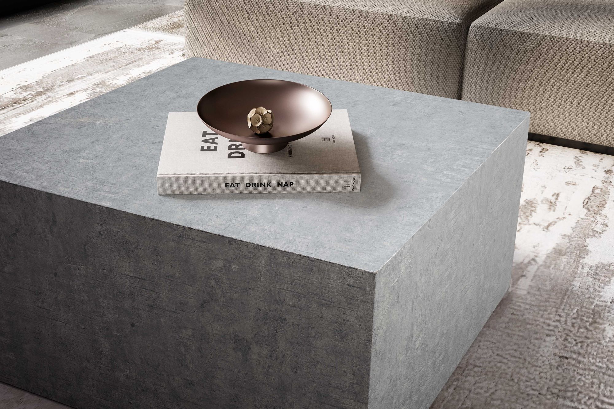 A mesa de centro MONOBLOC combina design minimalista com funcionalidade num acabamento cinzento betão mate. A sua forma quadrada oferece superfícies amplas para comandos, revistas ou objetos decorativos em salas ou áreas lounge.