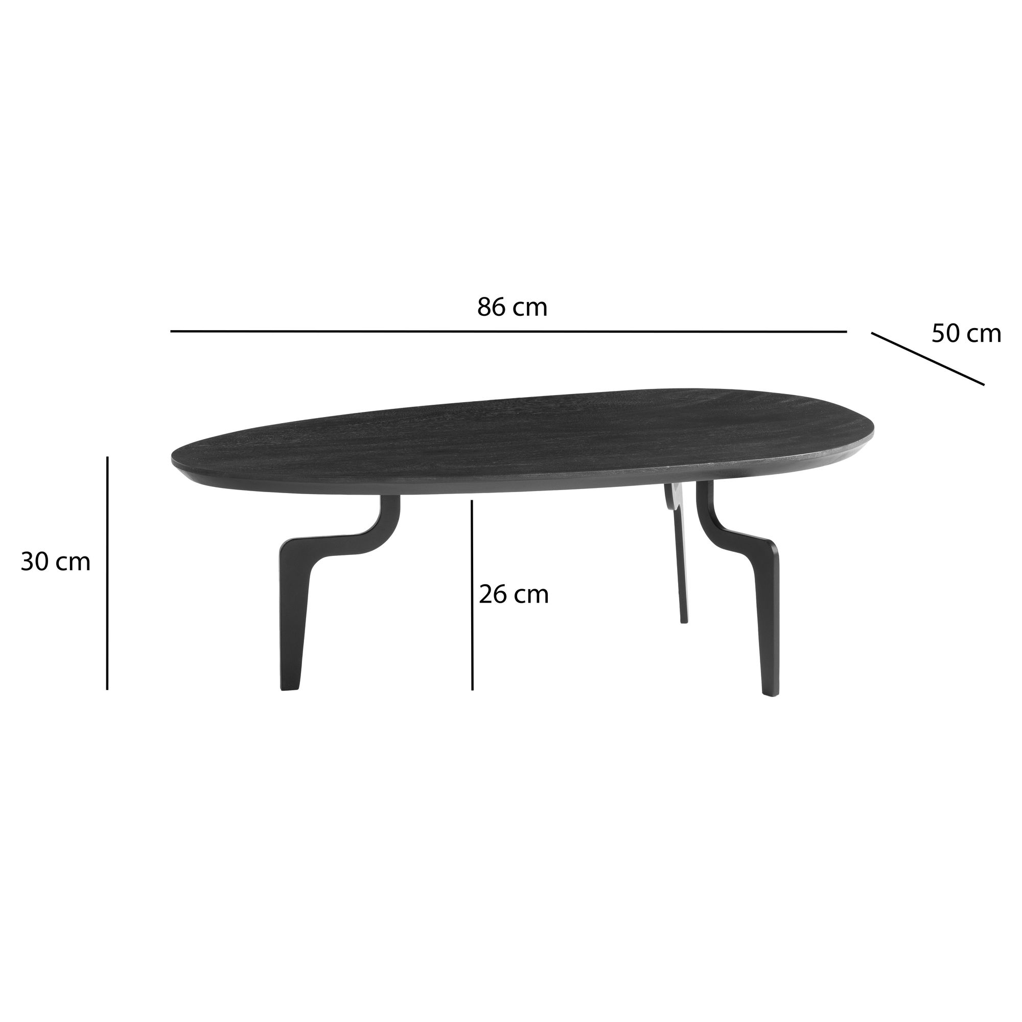 Informações de produto "Mesa de Centro Oval | Madeira Maciça de Manga Preta | 86x50x30 cm"