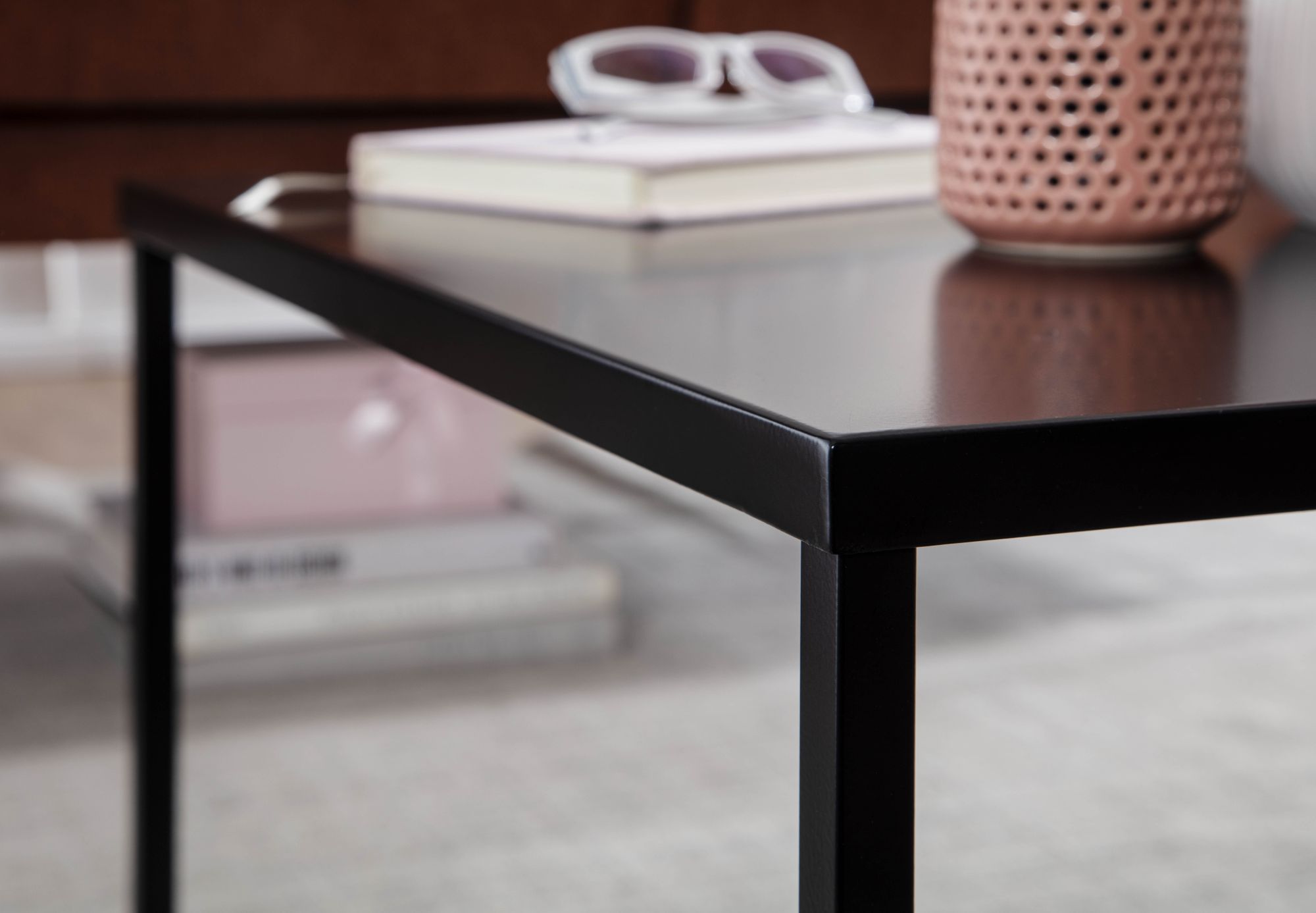 Adote um estilo industrial chique com esta mesa de centro quadrada em aço lacado preto. A sua durabilidade e design elegante tornam-na perfeita para uso diário na sua sala.