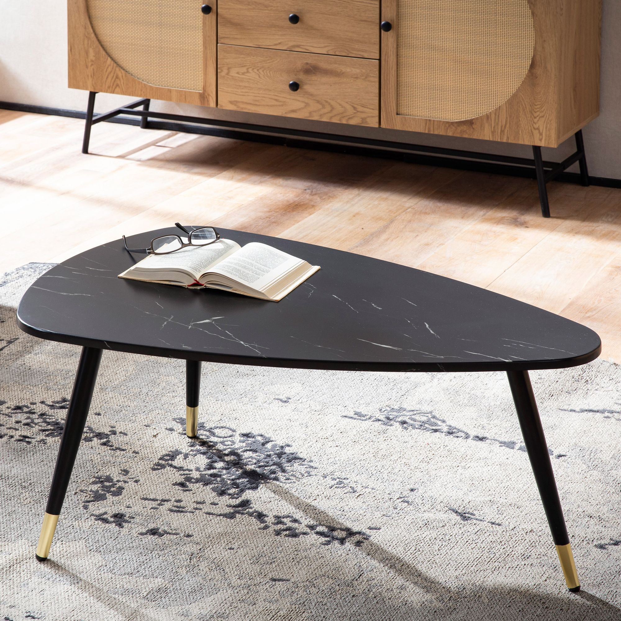 Informações de produto "Mesa de centro triangular preto efeito mármore | MDF folhado | 90x60x41 cm"