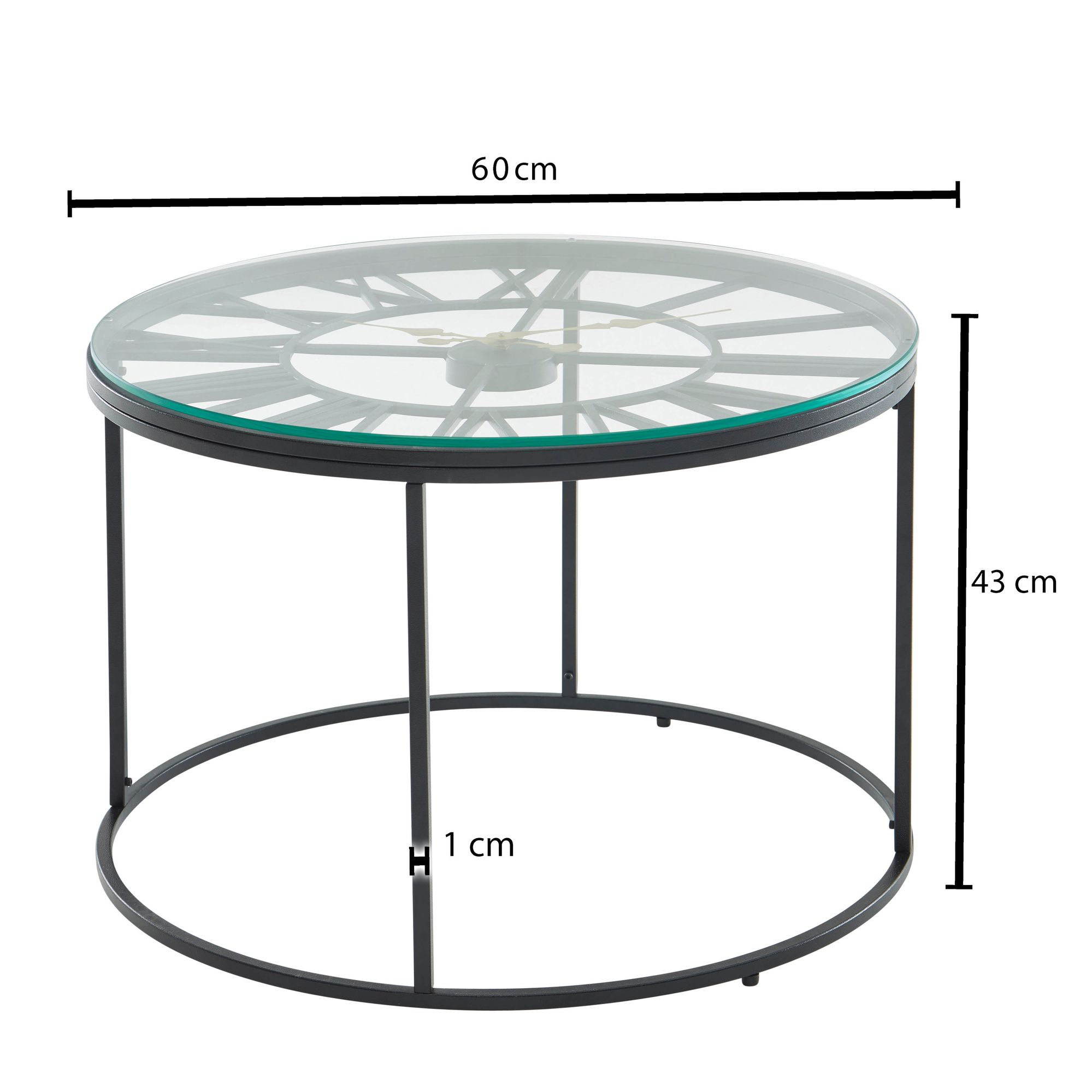 Informações de produto "Mesa de Centro Vidro Metal Preto 60x60x43 cm | Mesa Redonda Moderna com Relógio Decorativo"