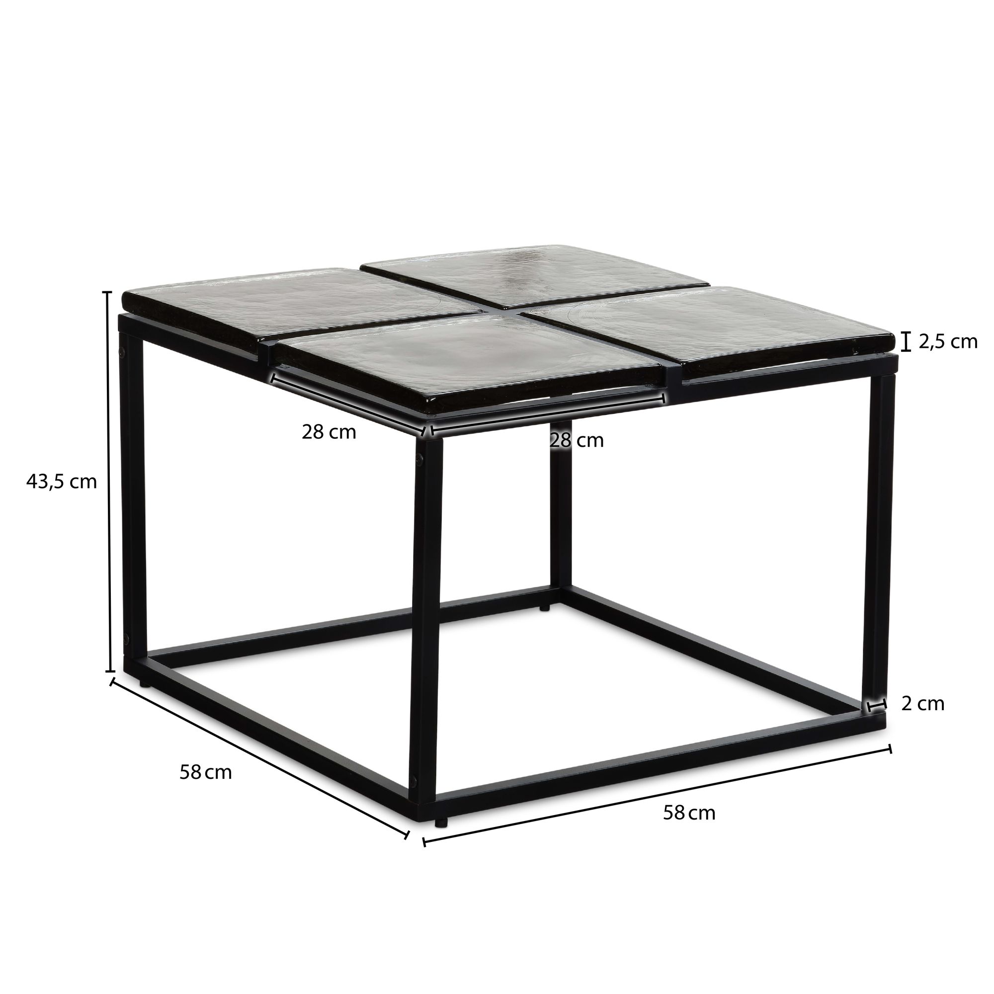 Informações de produto "Mesa de centro vidro ornamental metal preto | 58x58x43,5 cm | Design moderno quadrado"