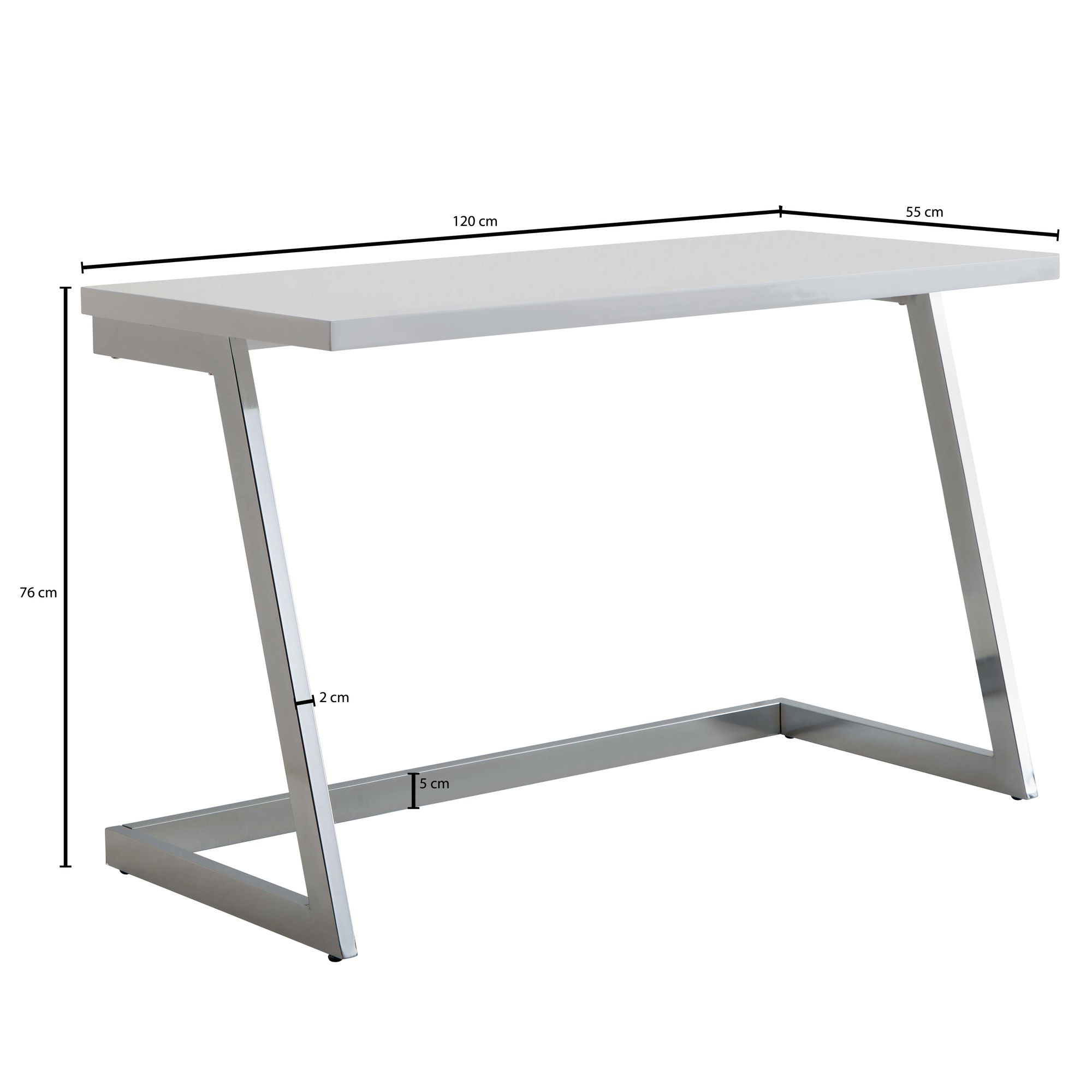 Informações de produto "Secretária branco brilhante / prata | 120x55x76 cm | Tampo MDF pintado e pernas de metal cromadas"